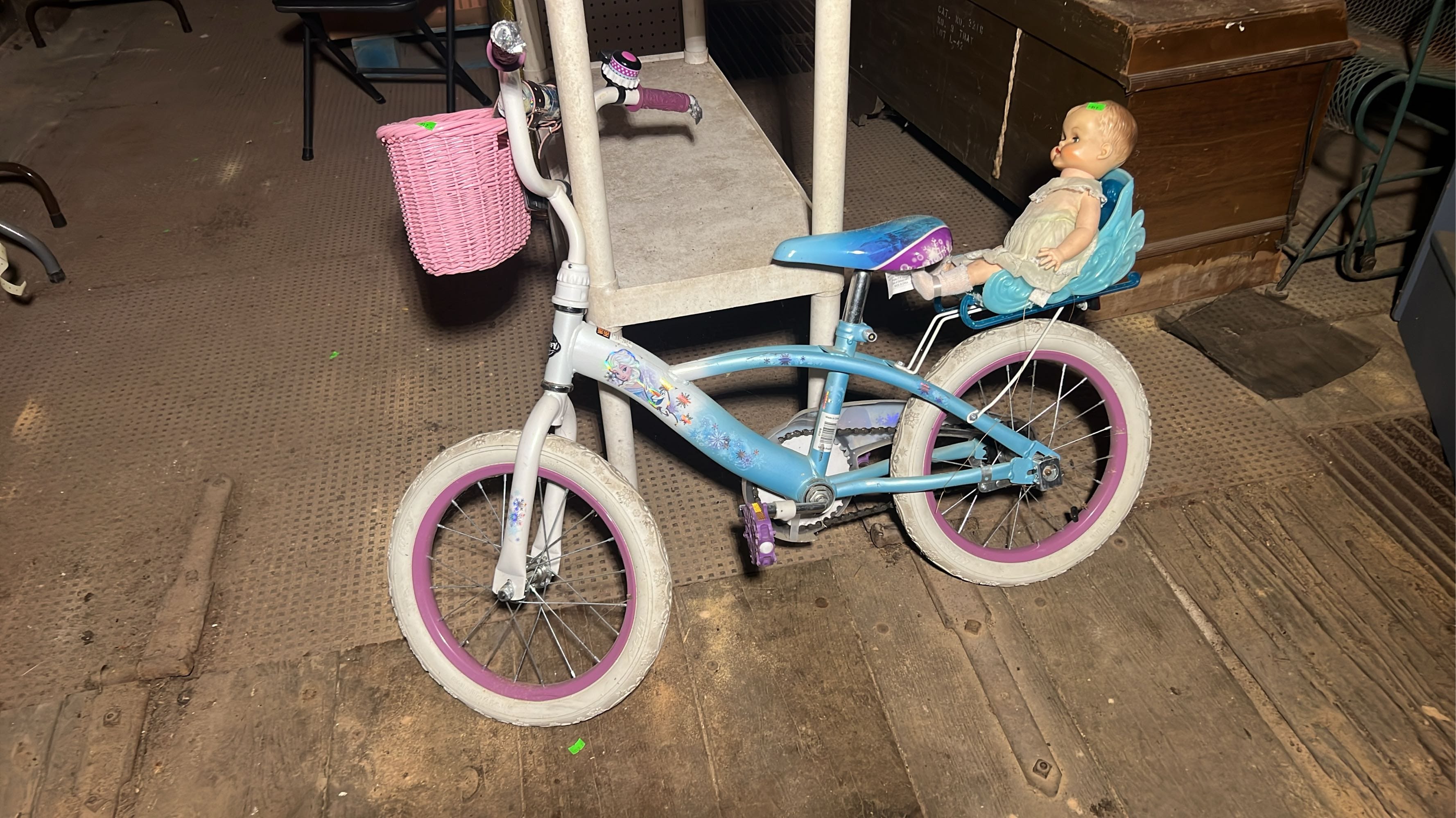 917 Huffy Girls Bicycle , 16” with basket and Baby doll