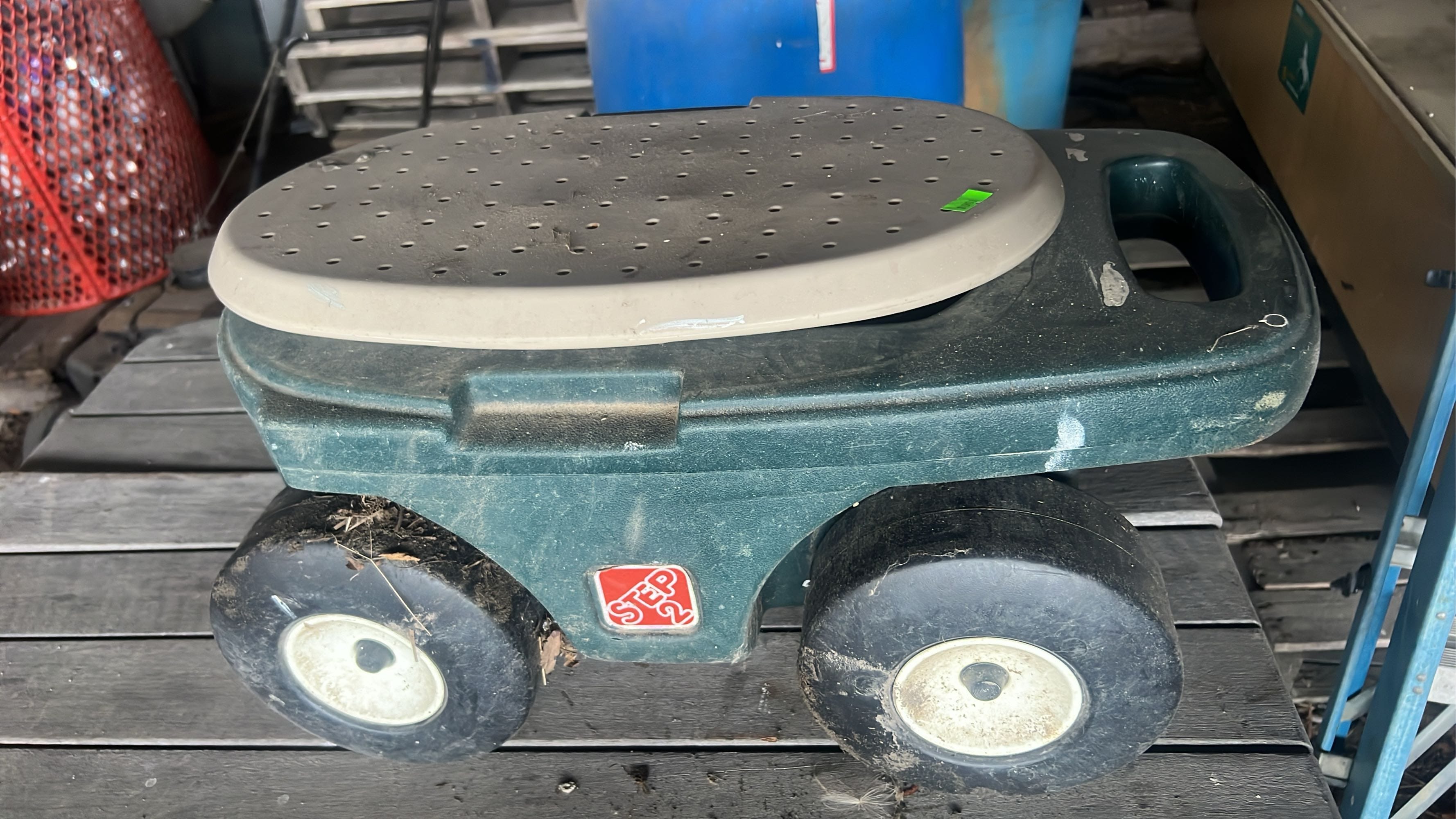 1001 Step 2 garden cart/seat , 20”x11”and contents