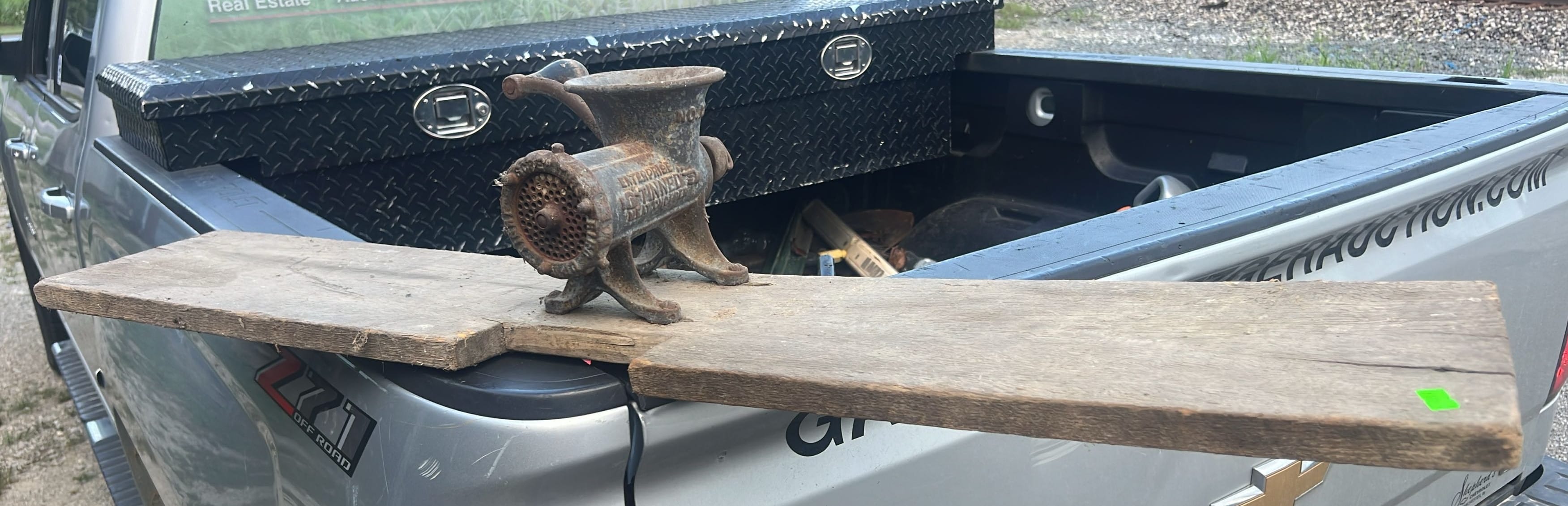 1002 Enterprise Tinned Meat chopper on wood board ,45.5”