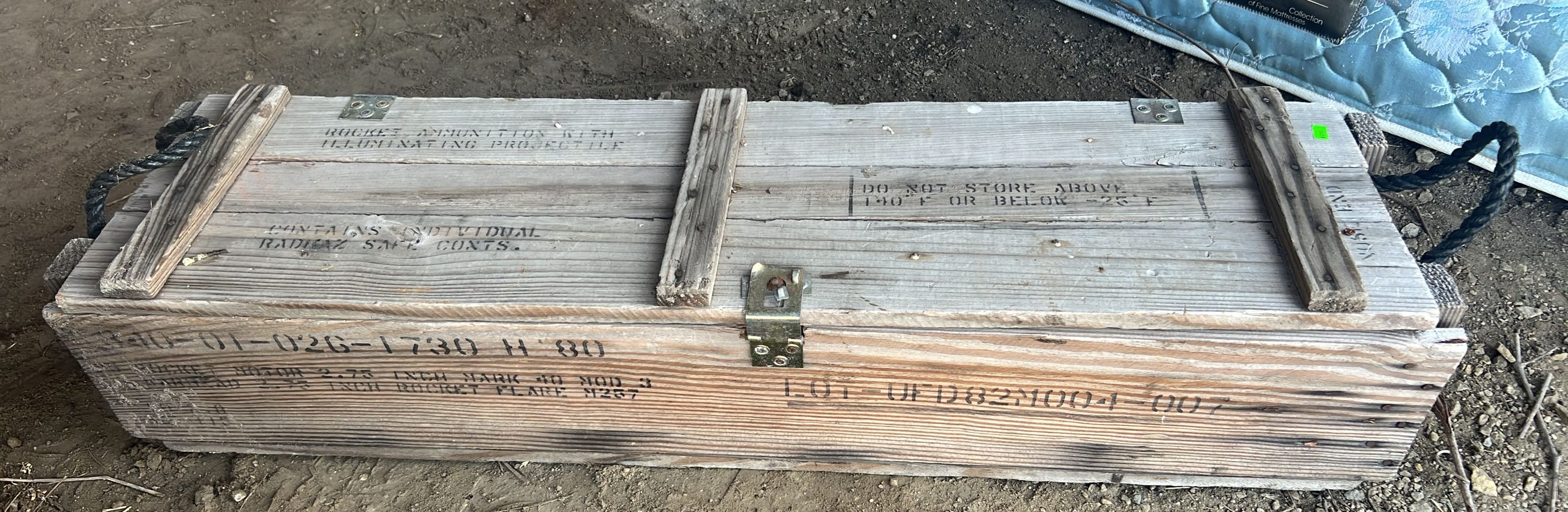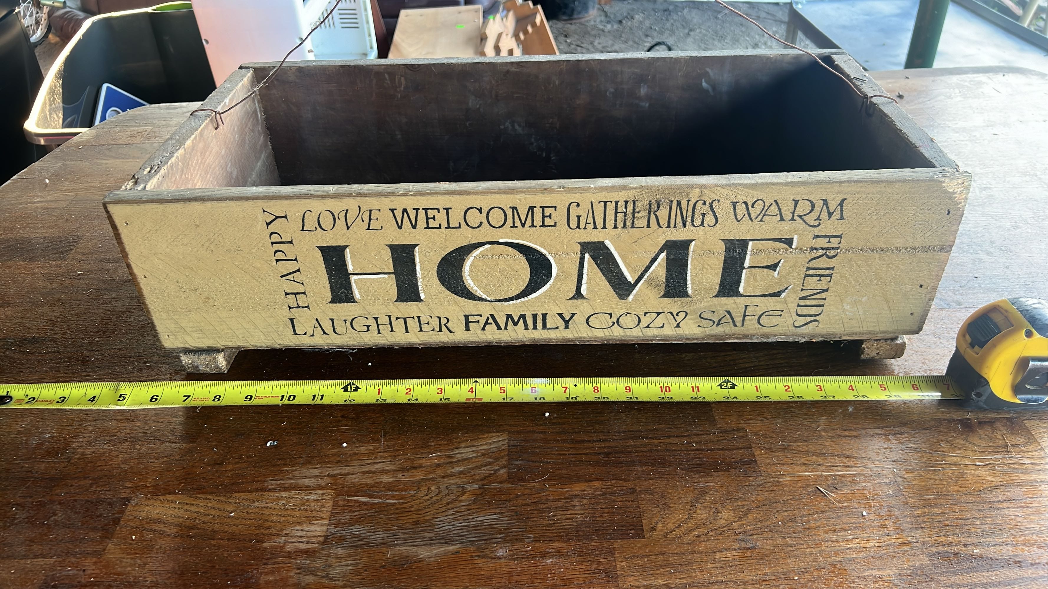 1035 Crate with stenciling , 11.5”x24”x 7”