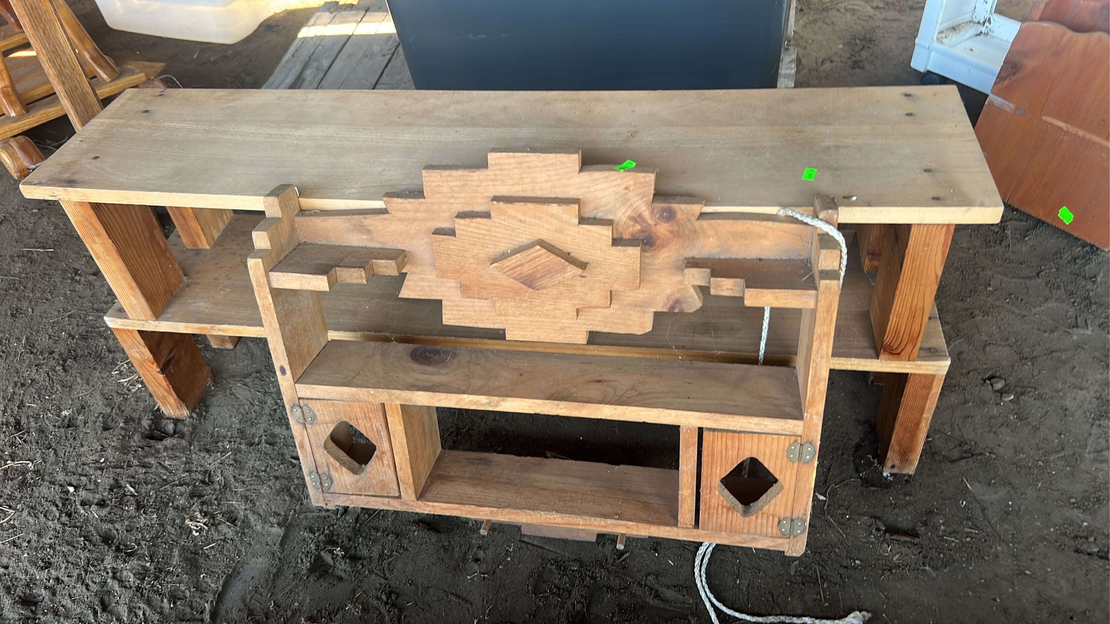 1042 Wood shoe Shelf , 10”x45”x 18” , ornate wall Display shelf. ,24.5”x21”