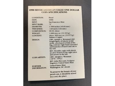 2001 1990-S American Eagle One Ounce Proof Silver Bullion Coin