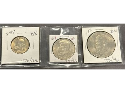 2276 1776-1976 Washington Quarter, 1776-1976 Kennedy Half Dollar, 1776-1976 Eisenhower Dollar