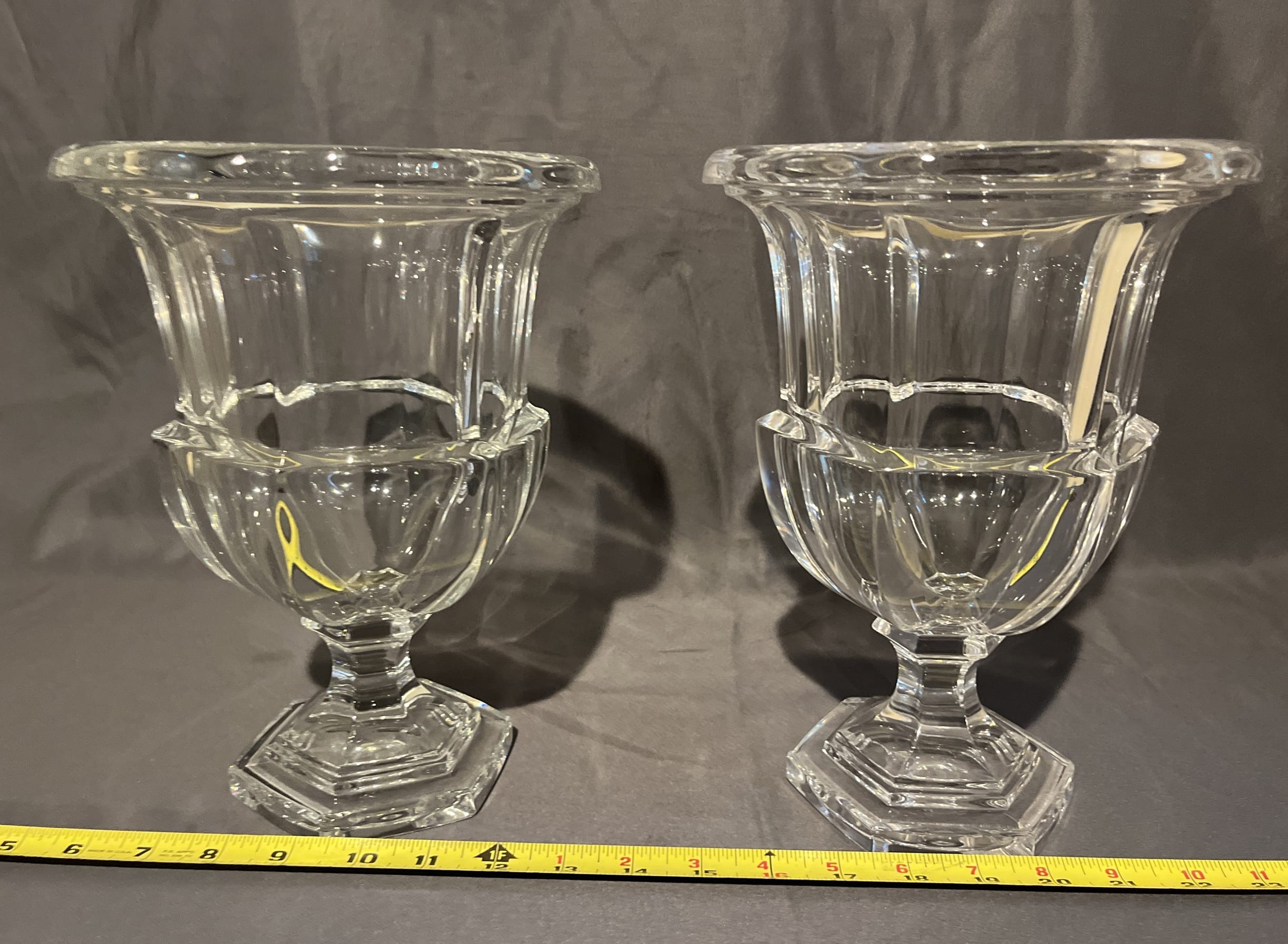 2 Pair Clear glass vases 10"