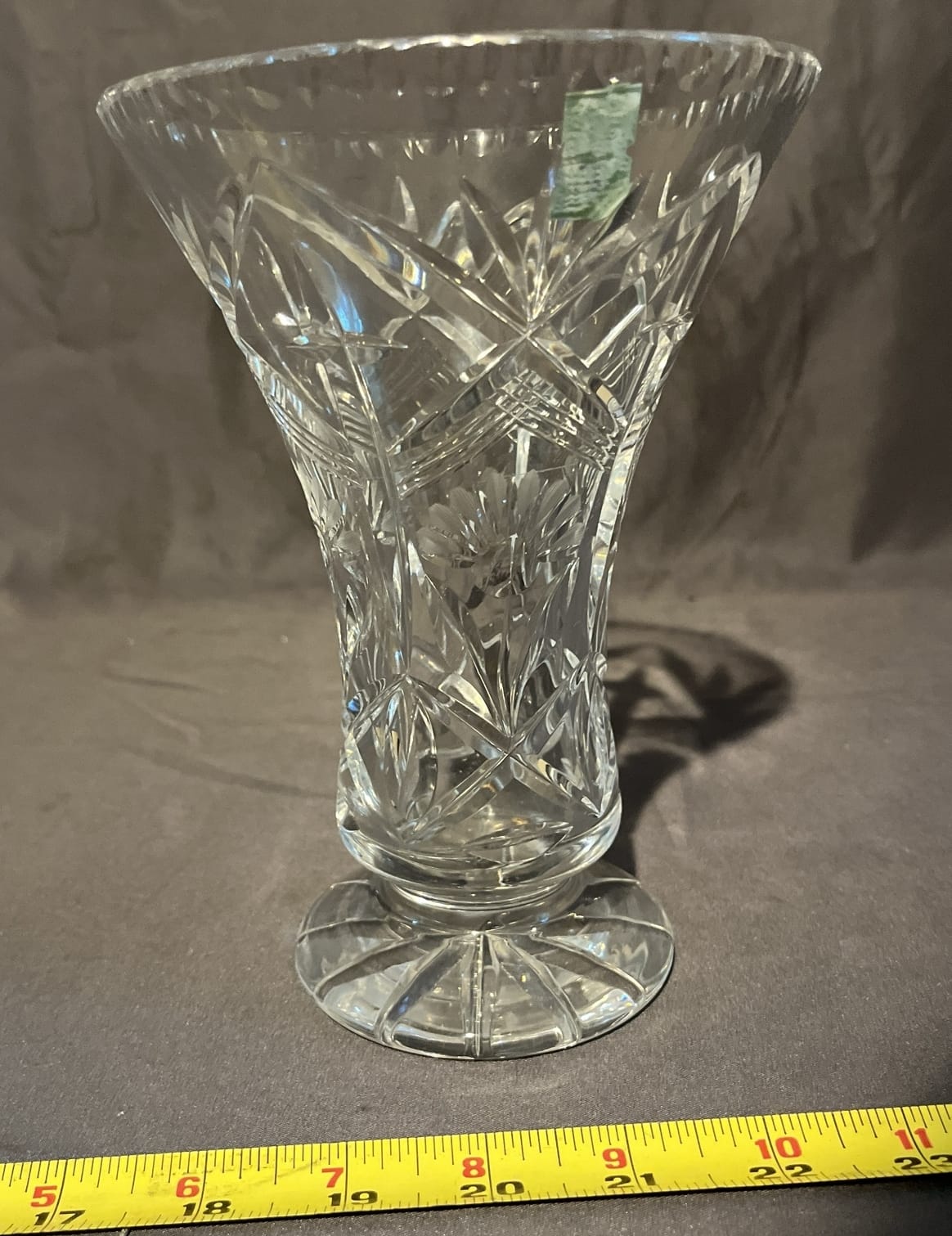 11 Clear Cut Glass Vase 7.5”