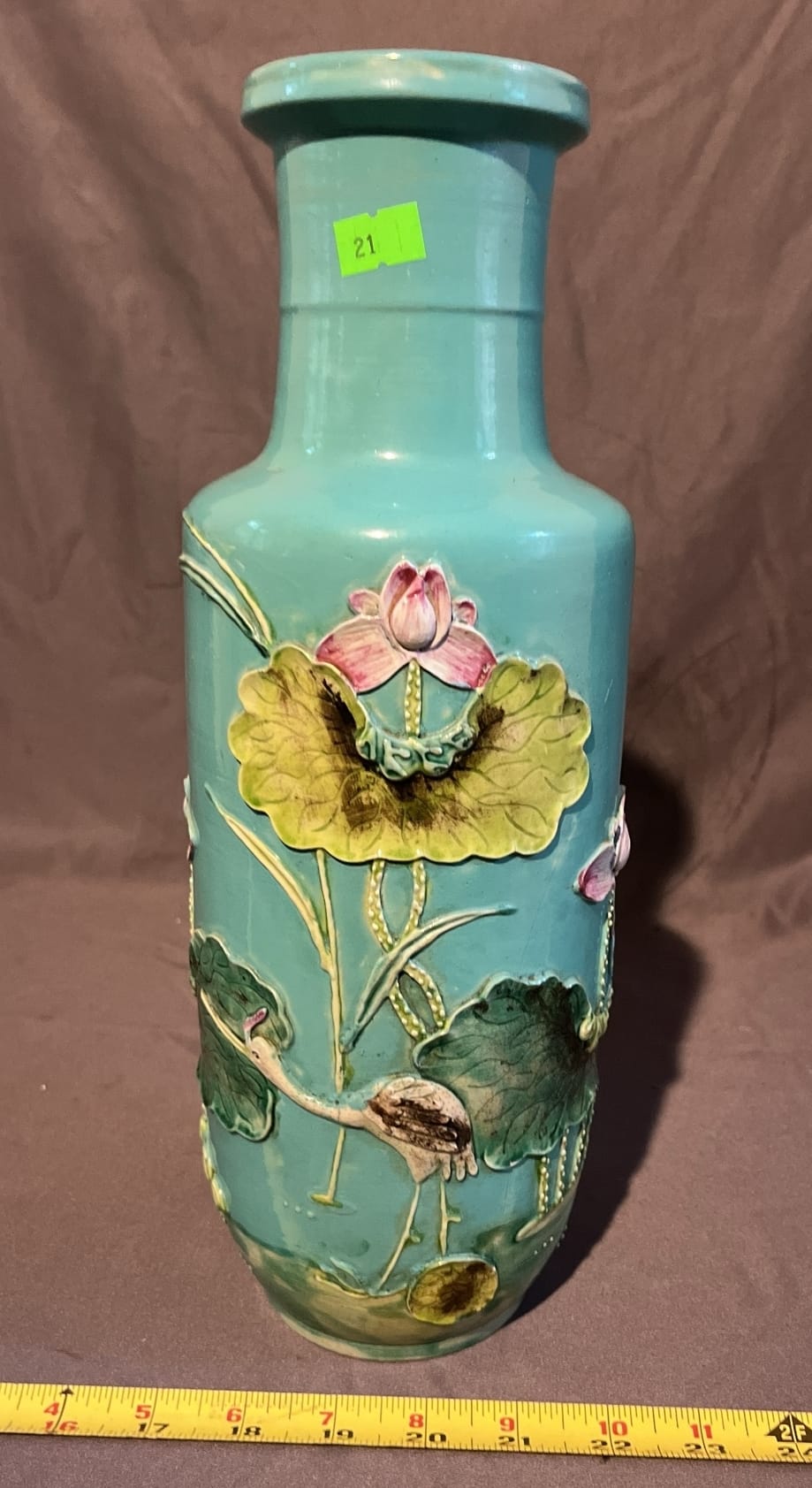 21 Floral Ceramic Vase (Crack on Bottom) 13.5”