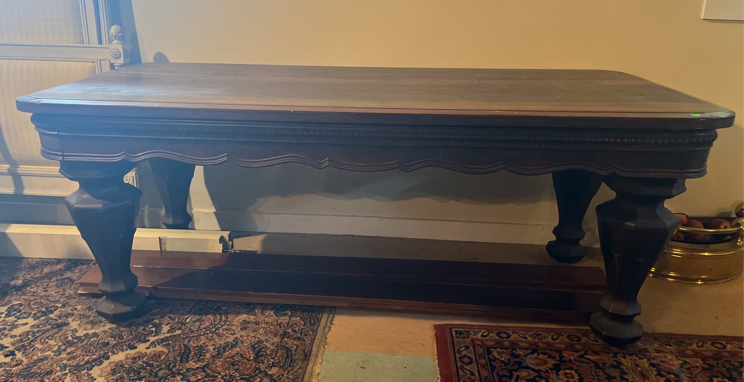 37 Console Wood table made from grand piano parts, some veneer loss 37x80x31"