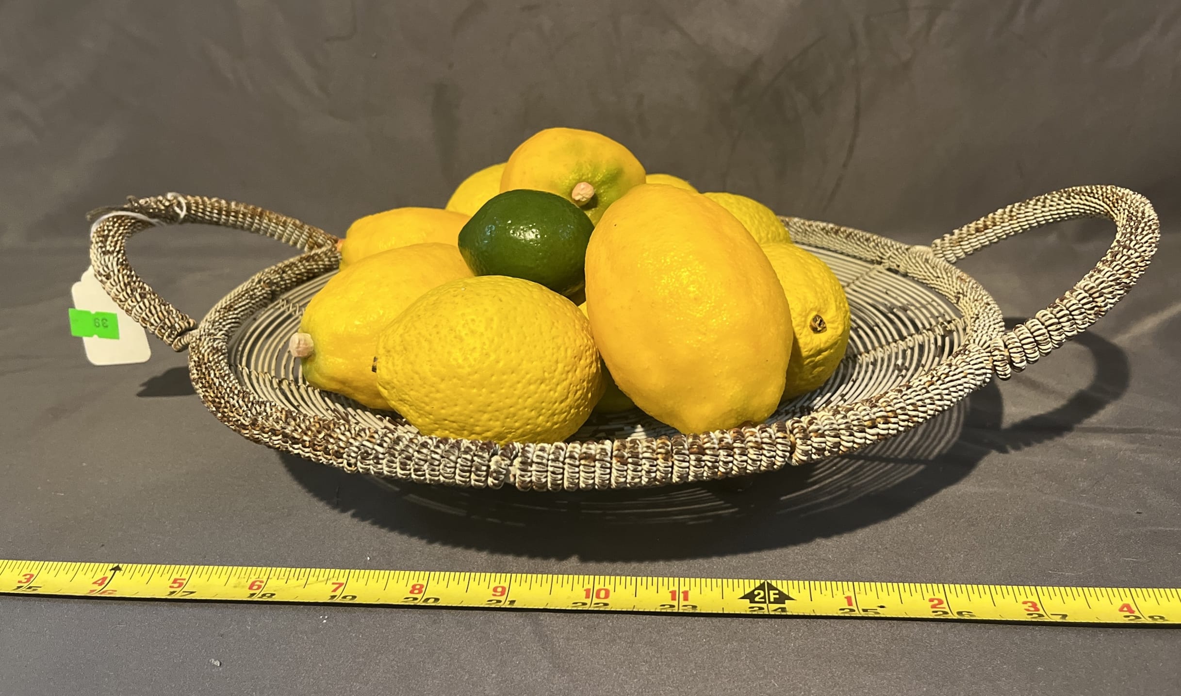 39 Metal Wicker Tray W/ Plastic Fruit 12”