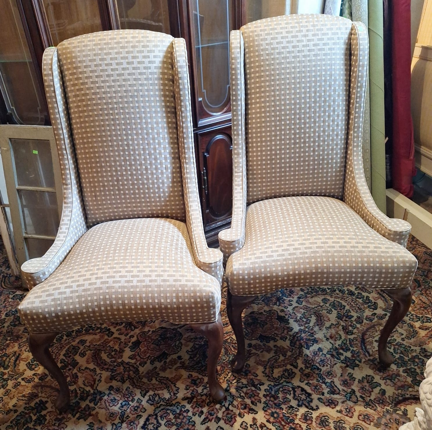 67 Pair Upholstered queen Ann style chairs