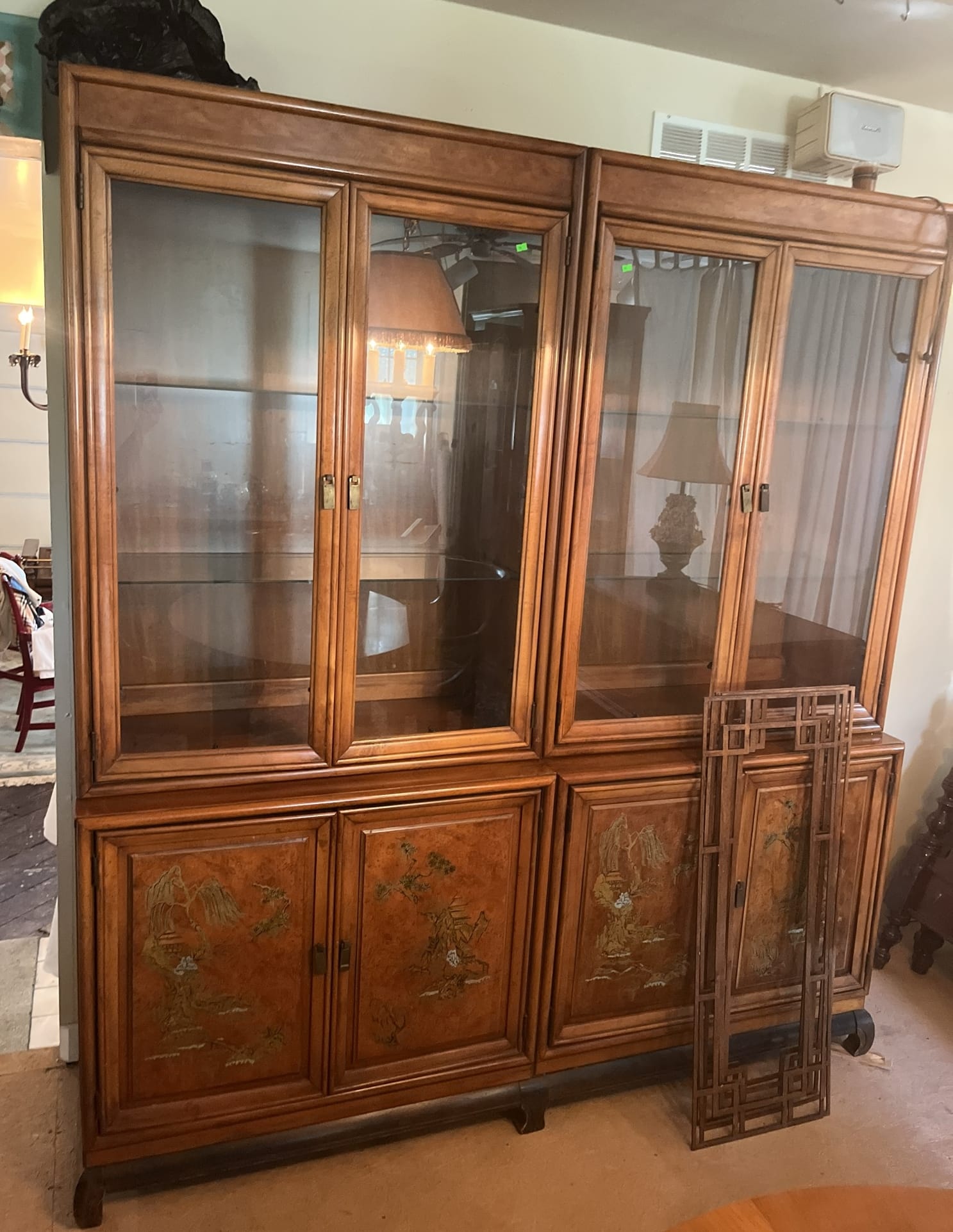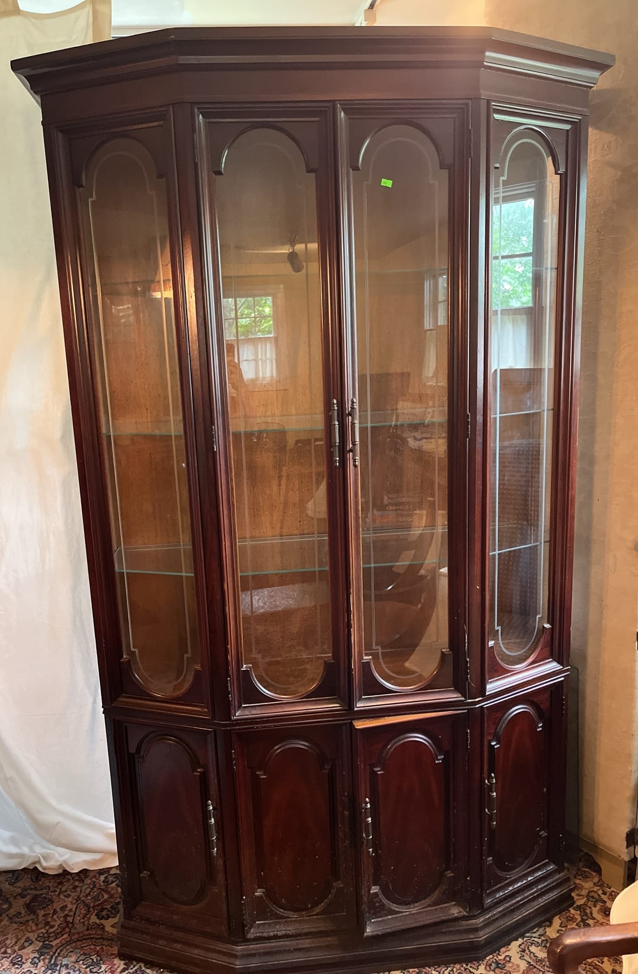 71 Henry Link China cabinet with 2 base cabinets & 2 upper glass front - 1 Base has inserts for windows 81.5x72.5x19"