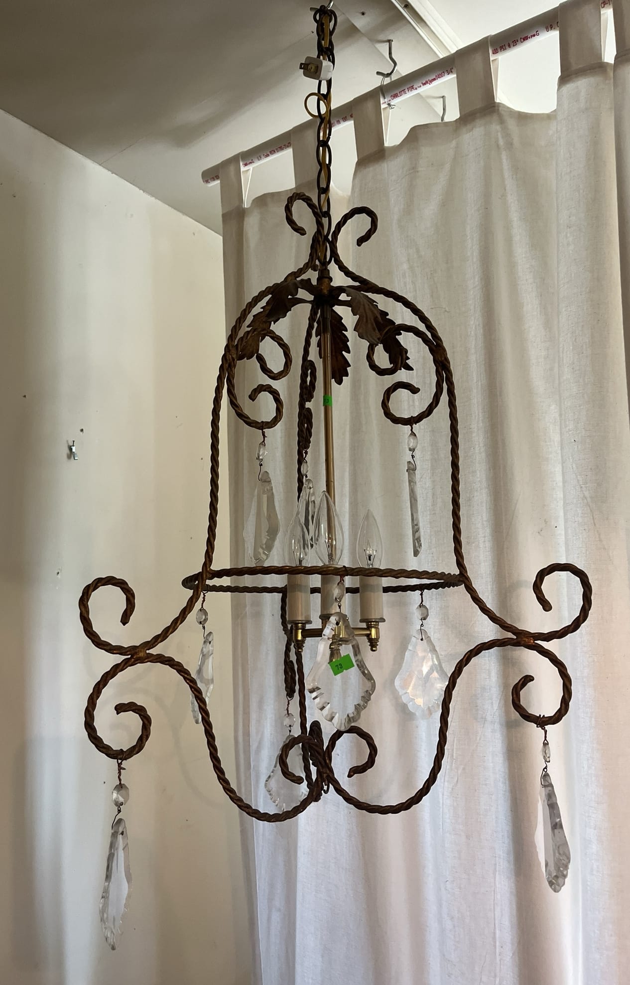 73 Metal Chandelier with Crystal like prisms 26"