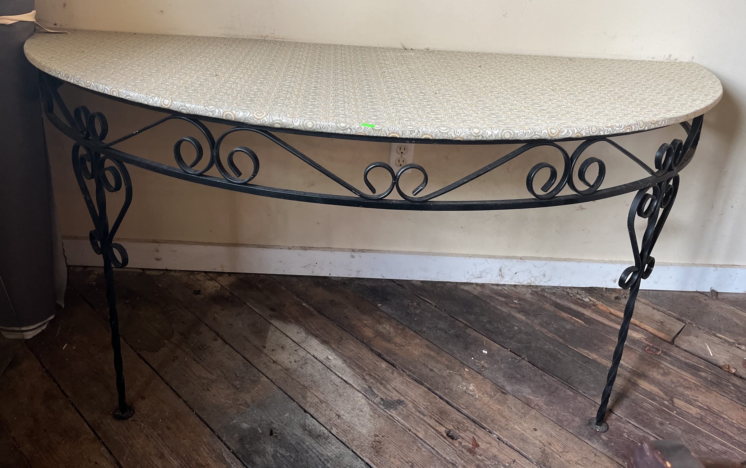 173 Wrought iron half round wall mount table 31x31x69"