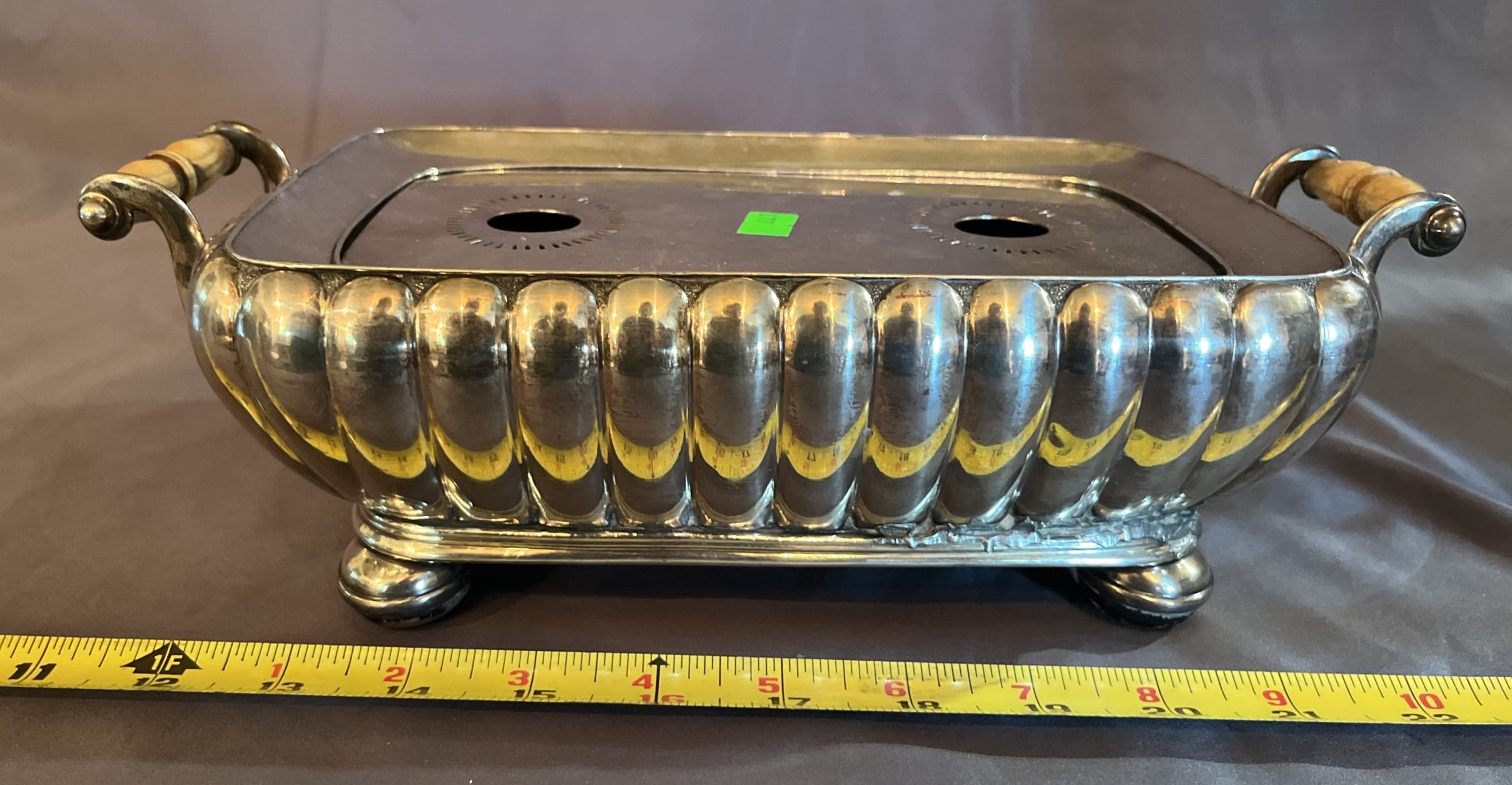 177 Sheffield silverplate warmer with copper insert