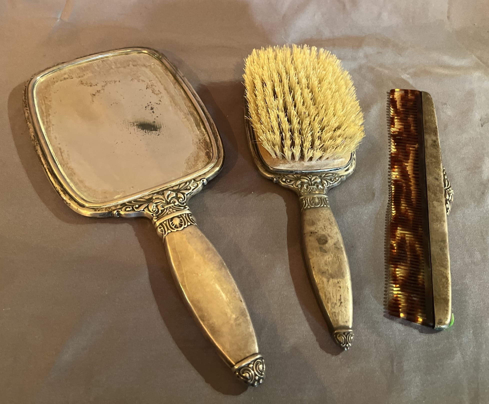 180 Silverplate brush, hand mirror and comb