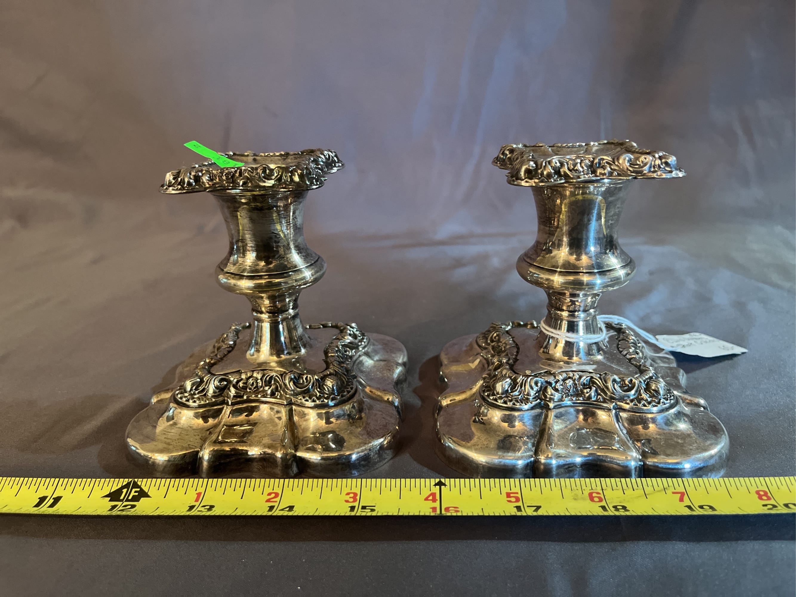 181 Pair Ellis Barker short candle holders regency plate 4"