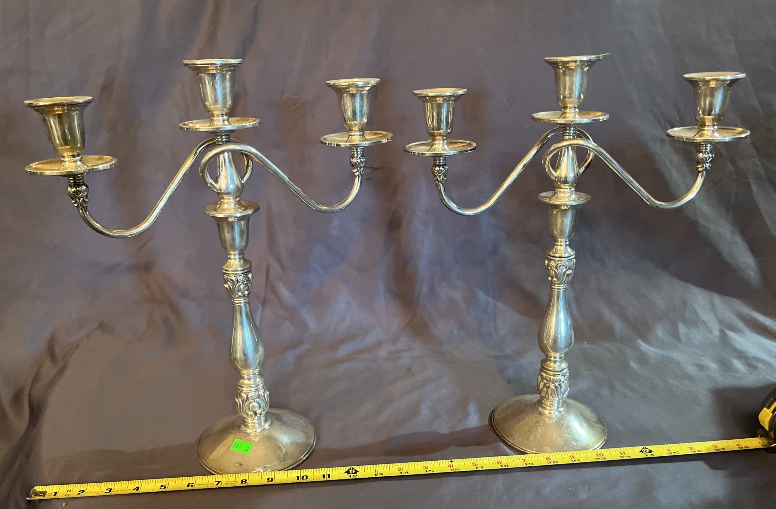 195 2 Royal Danish Sterling weighted reinforced 3-light candelabras, each breaks down into 4 pcs