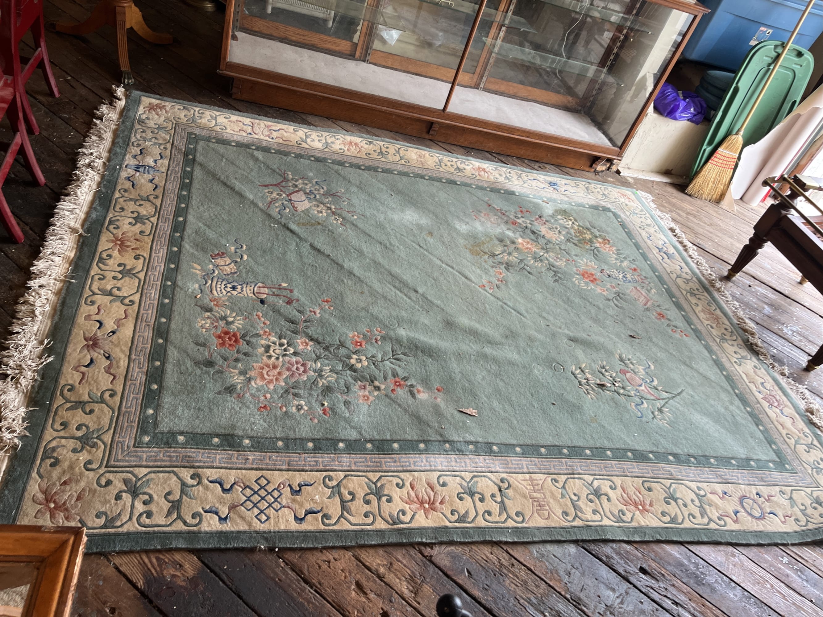 205 Oversized Art Deco Oriental Rug 9’ x 7’ (Stained and Worn)