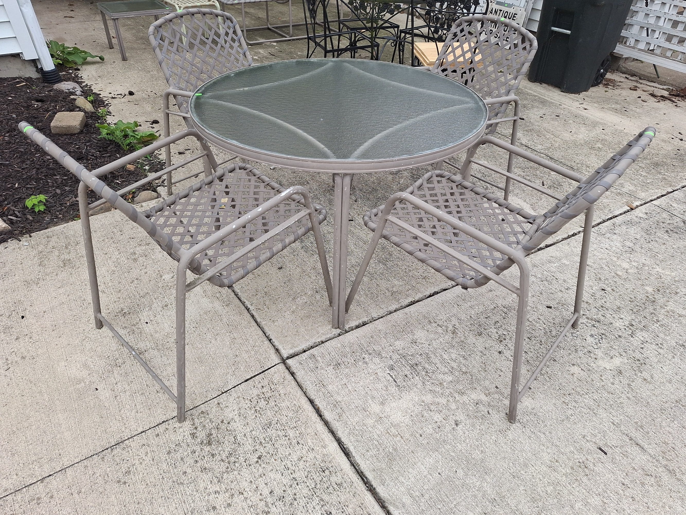 206 Tamiami Patio Dining Set tan , glass top table 41x25" four chairs 21x31"