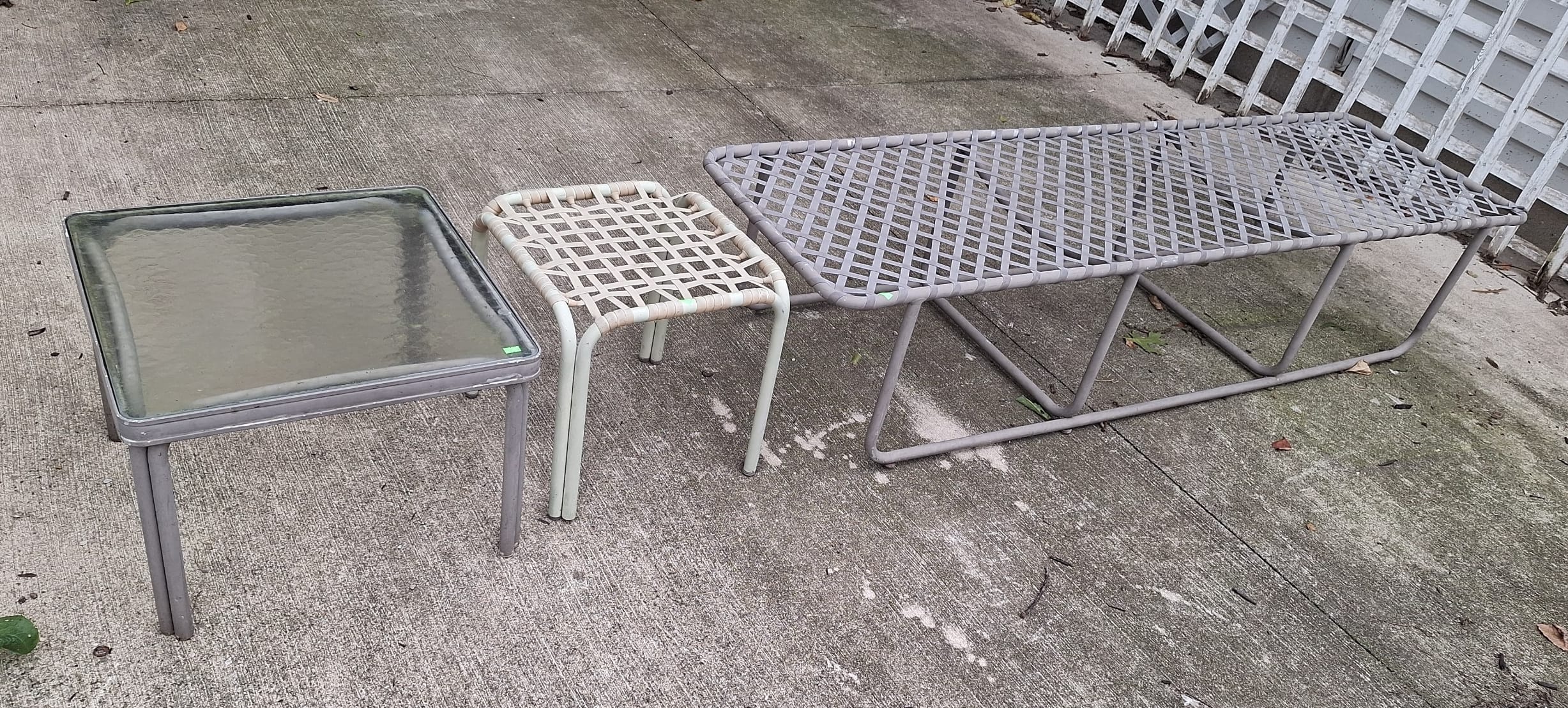 207 3pc. Tamiami Patio furniture, lounge 22x75", stool 15x16" and glass top side stand 20x20x15"