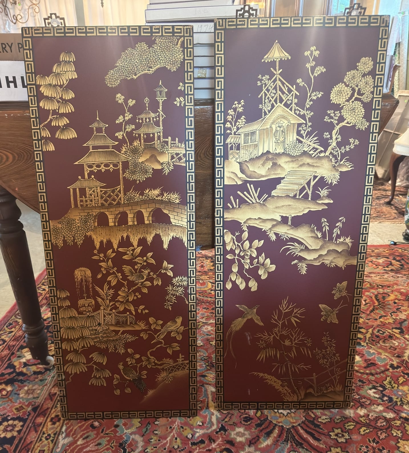 501 (2) Red Oriental Wall Art 3’x14”