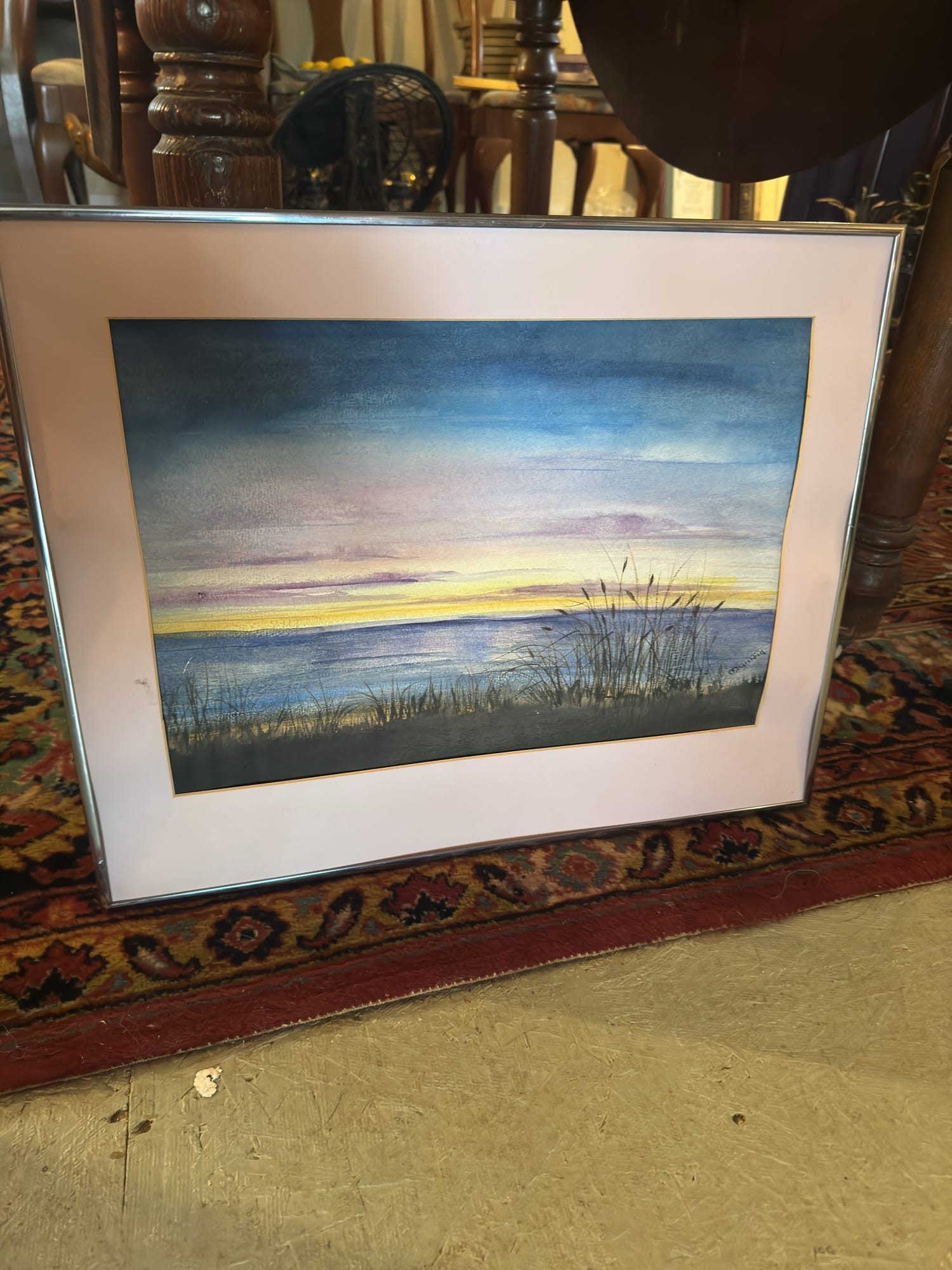 502 Metal Framed Artwork Signed Water Color Ocean 20”x17"