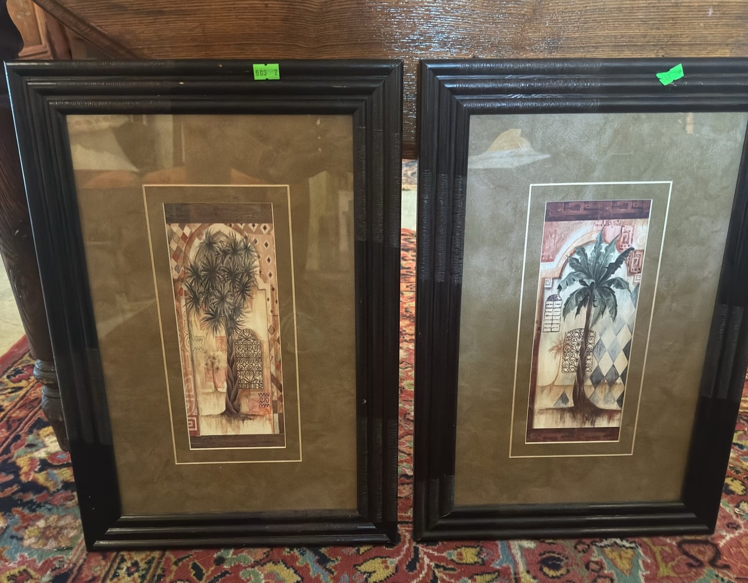 503 (2) Wood Framed Palm Tree Art Decor 19”x13”