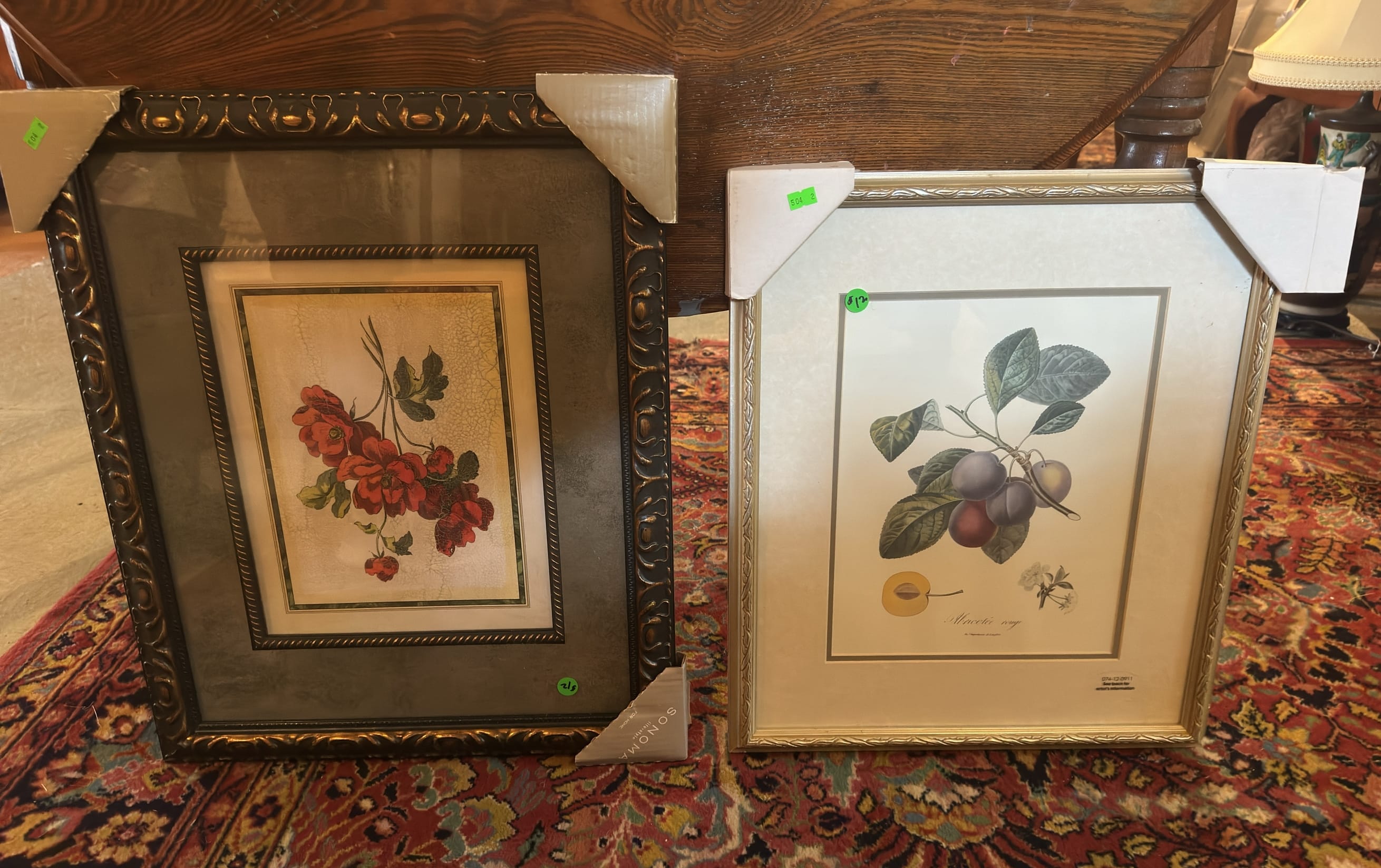 504 (2) Wood Framed Flower 19”x23” and Fruit Pierre-Antoine Poiteau Artwork 20”x17”