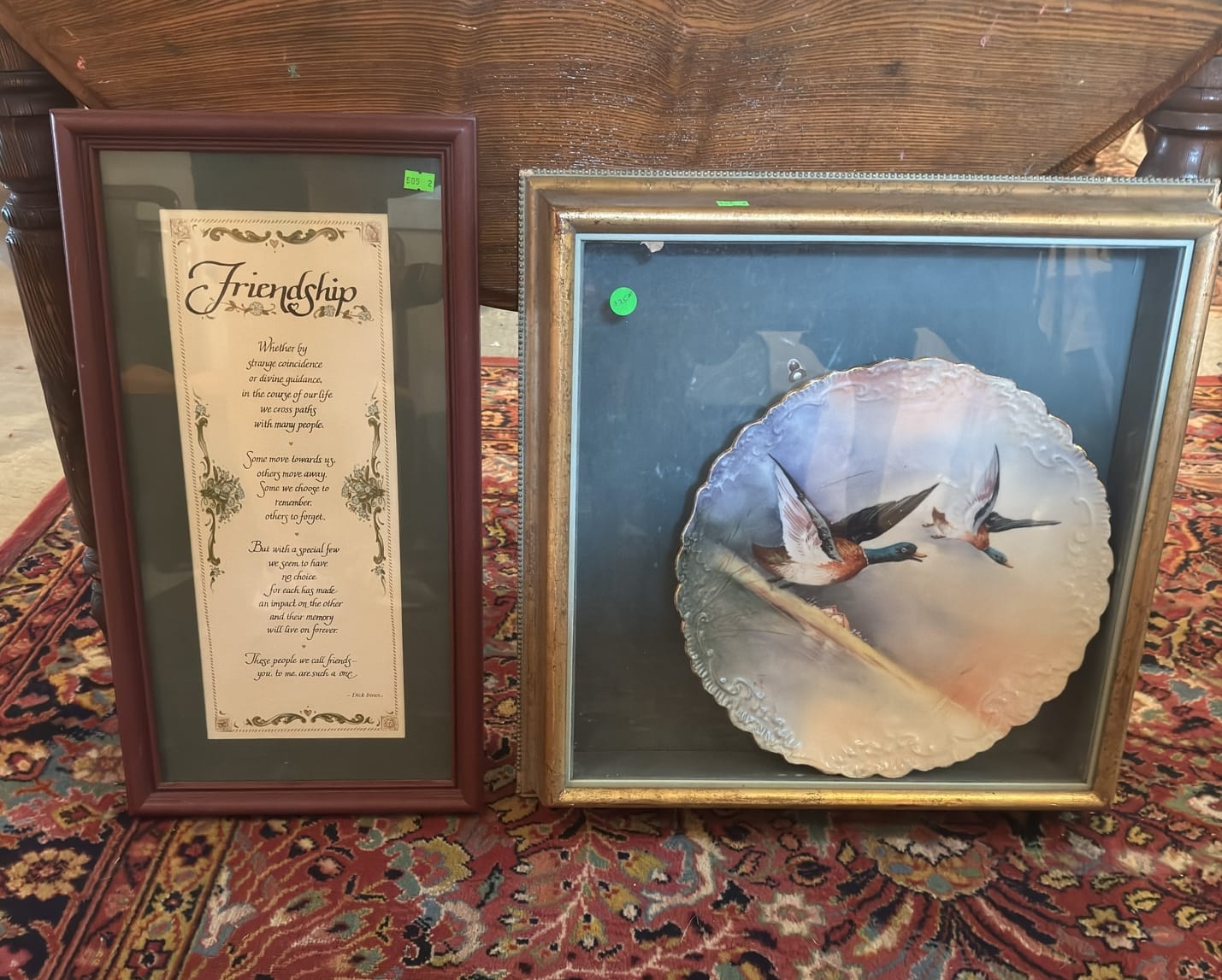 505 Framed Flying Duck Decor Plate 20”x20” & Plastic Framed Friendship Wall Hanging 22”x11.5”
