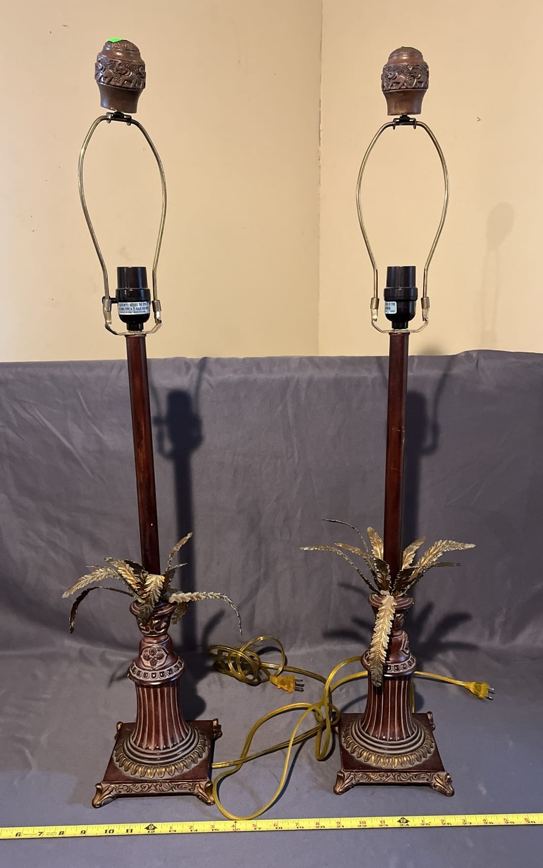 526 2 Brass palm decor lamps - no shades 34"