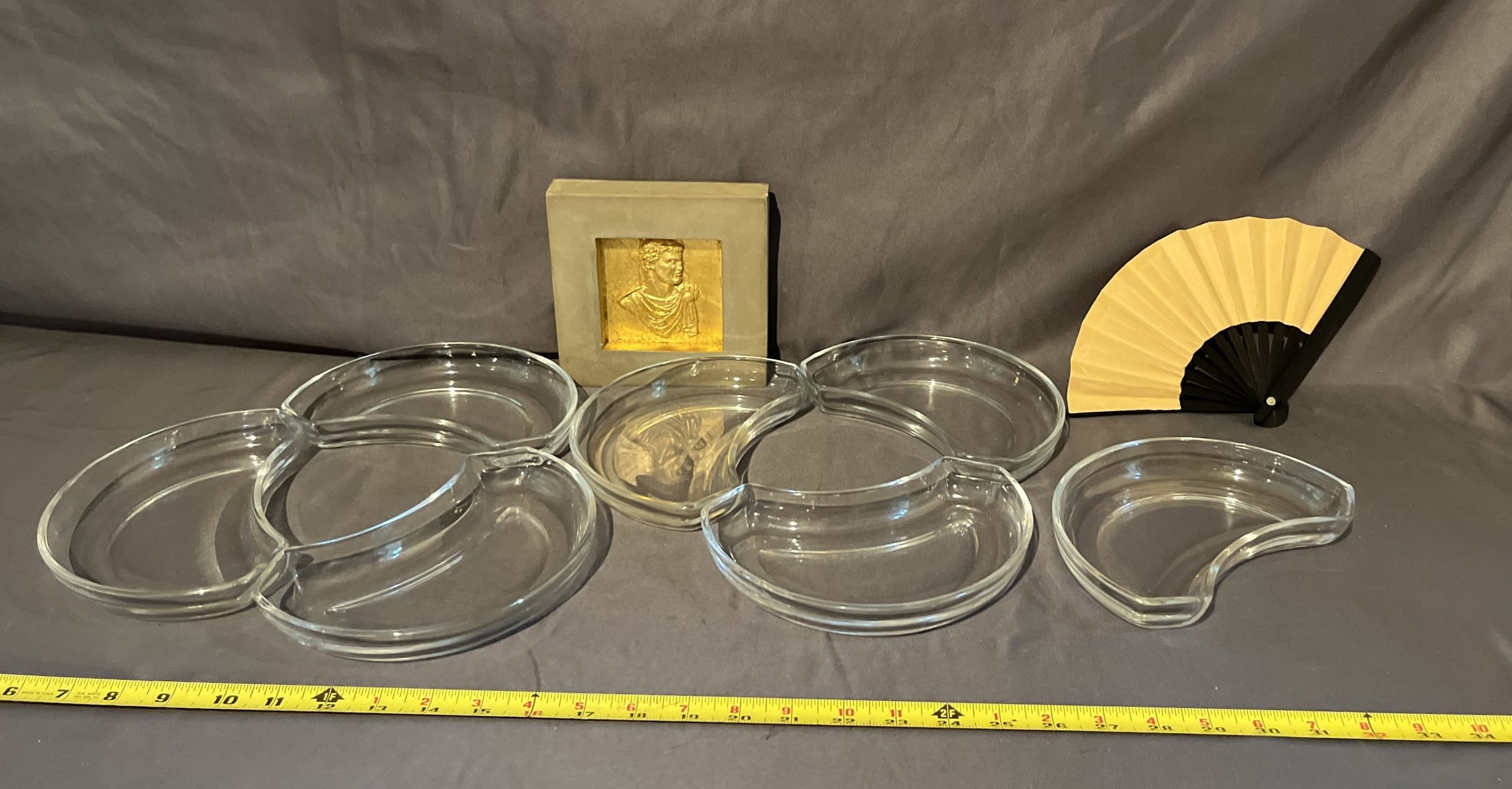 533 (8) Crescent Salad Plate Val St. Lambert, Hammered Copper Wall Art, Hand Paper Fan W/Wood Handle