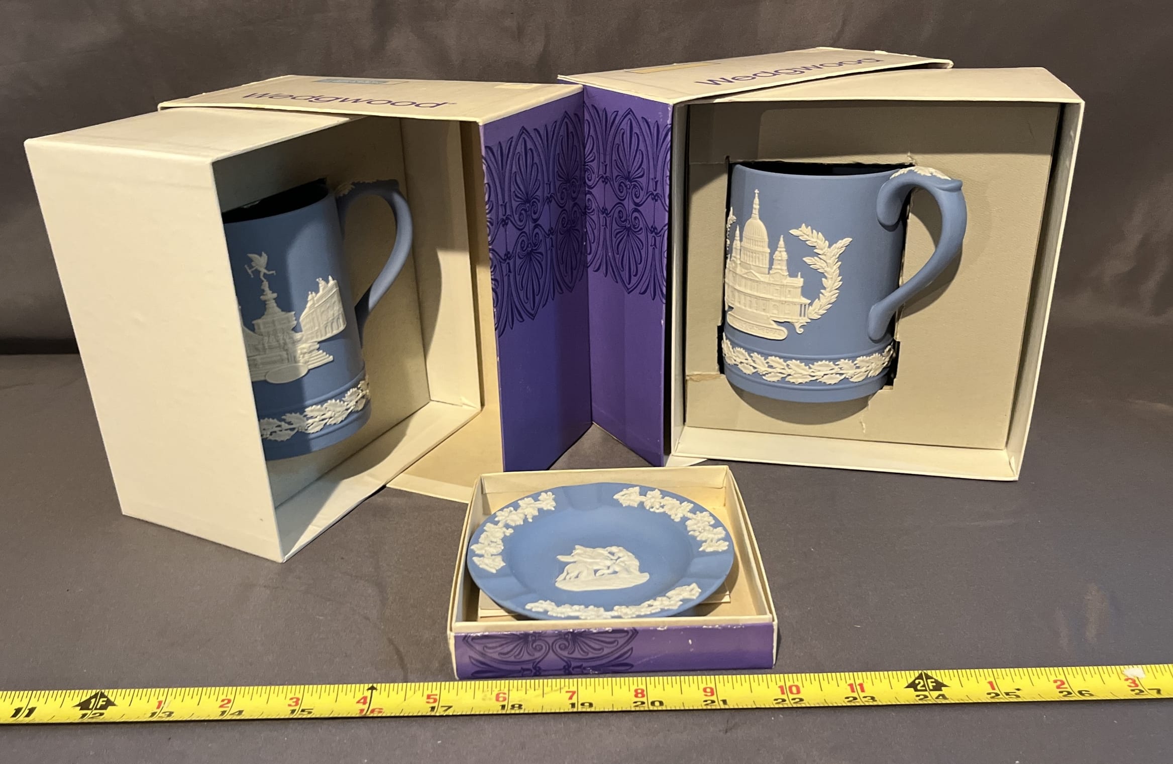540 2 Wedgewood mugs with boxes and jasper green ashtray with box