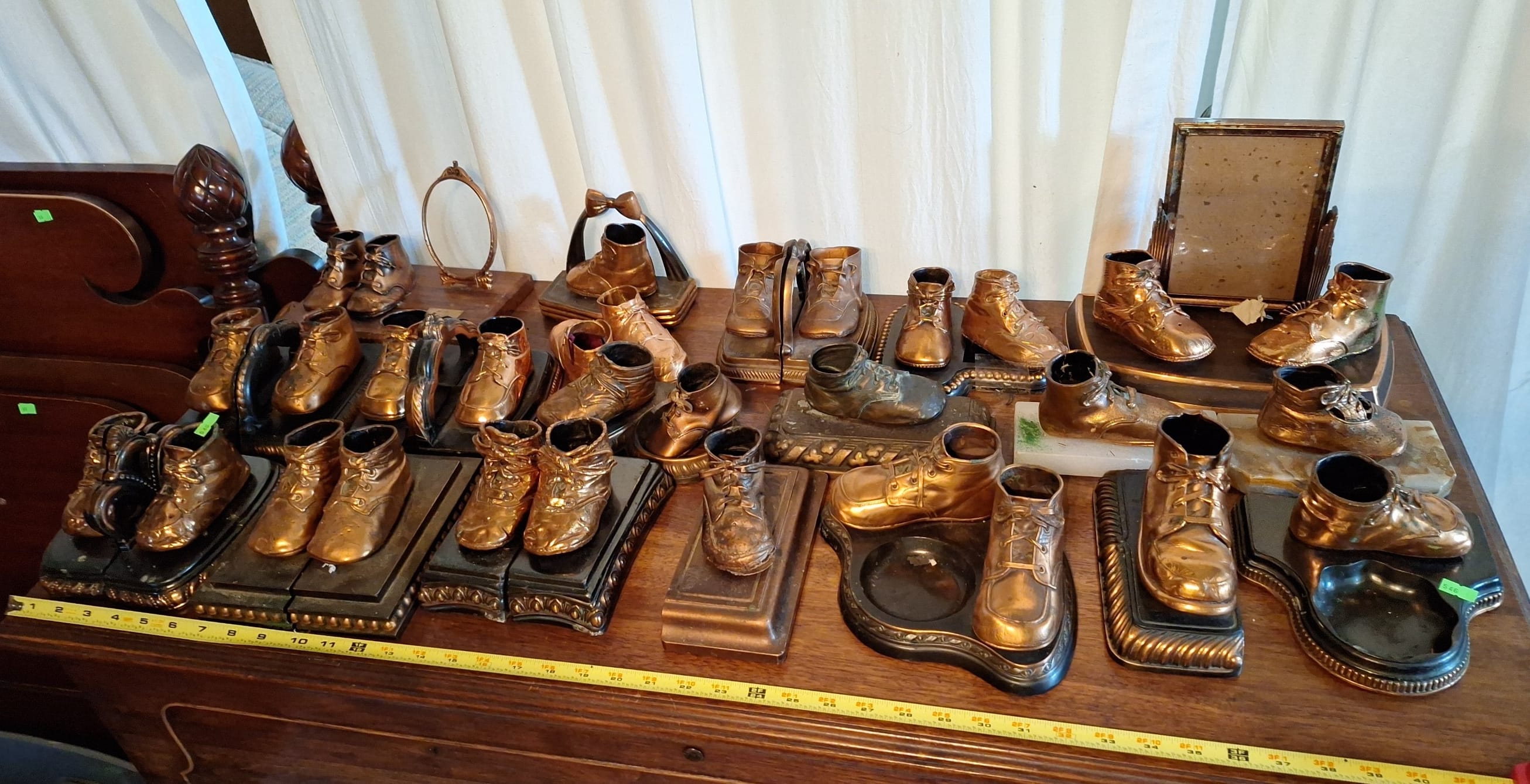 546 Brass Like Plastic and Pot Metal Baby Shoe Book Ends (Some Damaged)