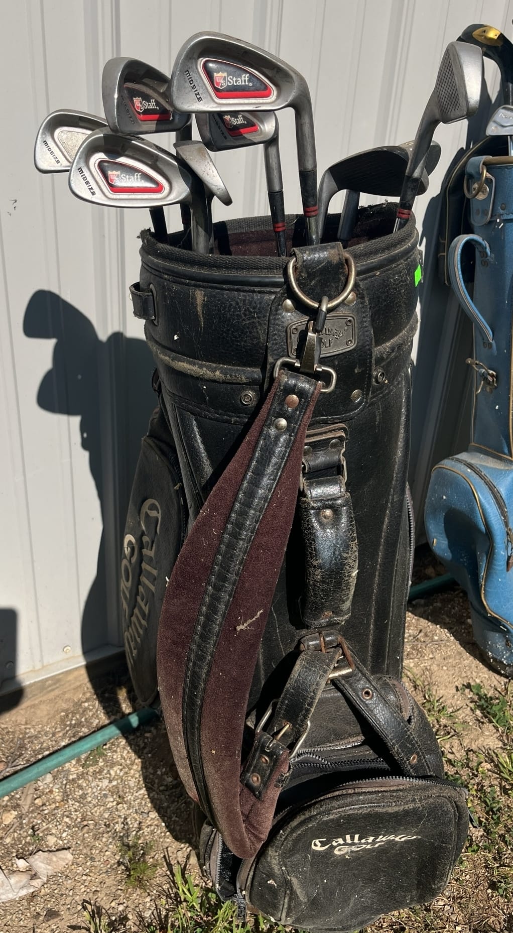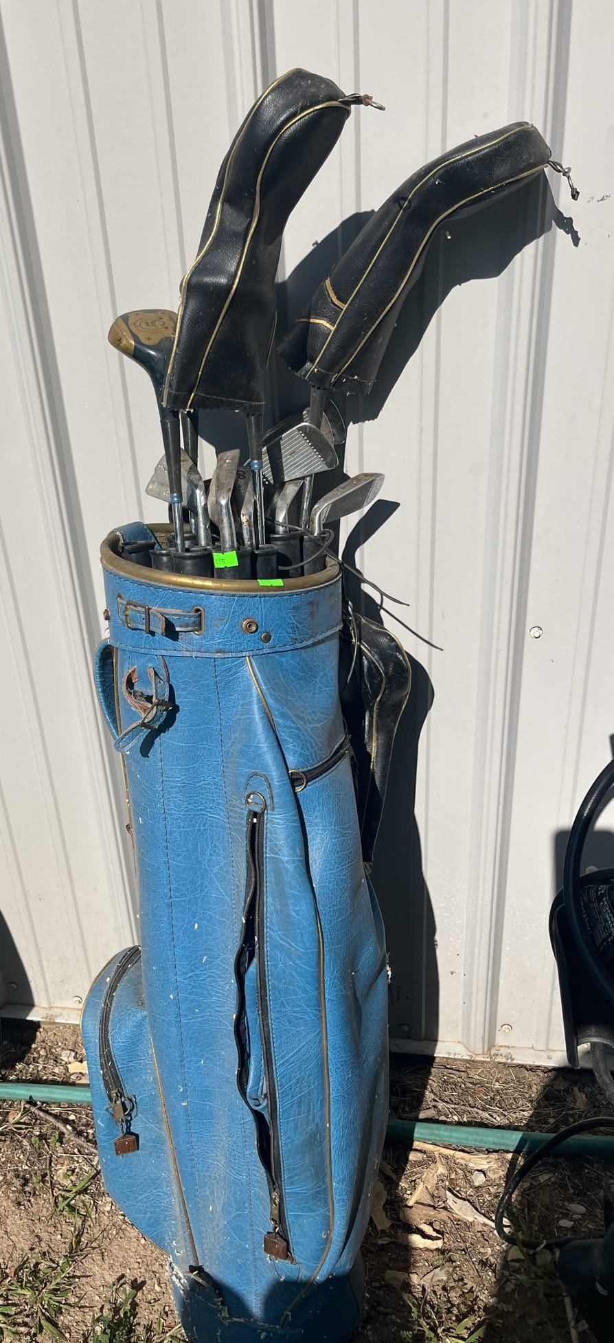 156 Blue golf bag with clubs inc. Power Bilt Countess