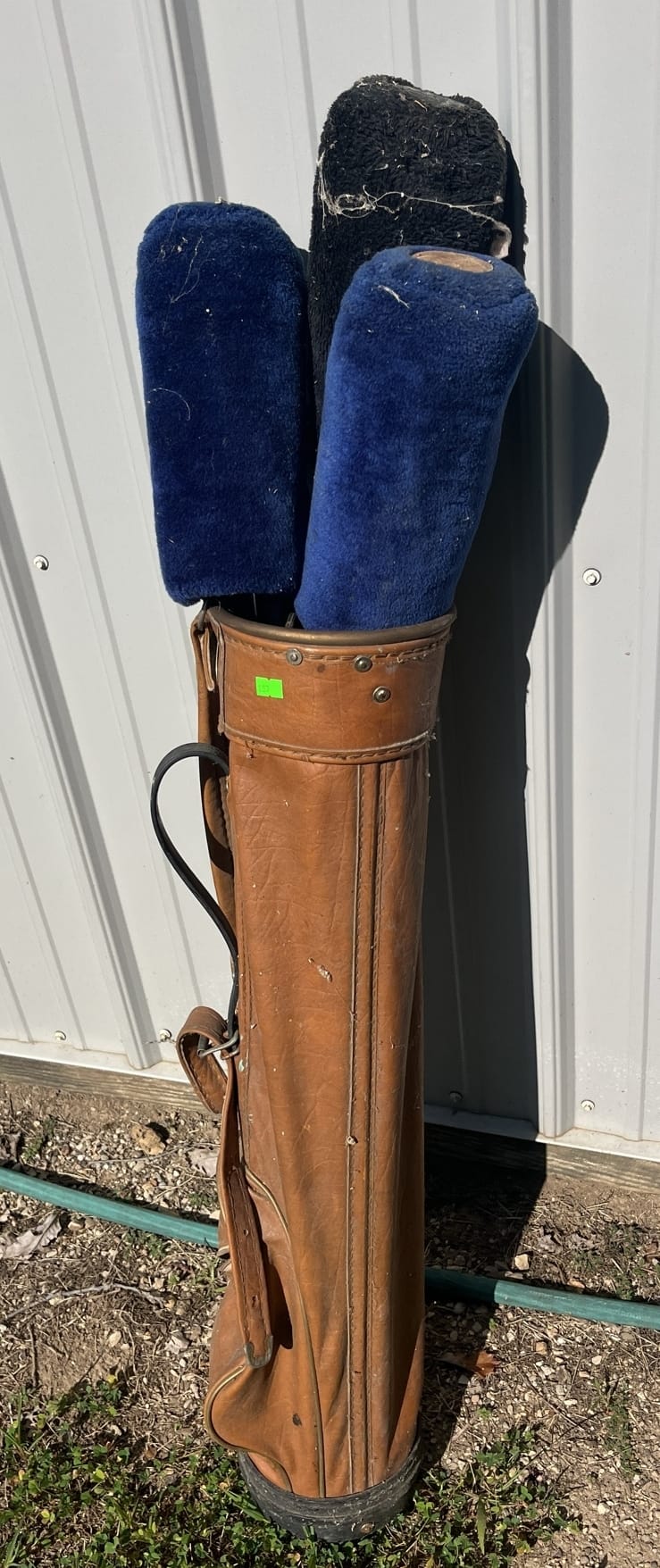 157 Brown golf bag with clubs inc. Jack Nicklaws Golden Bear