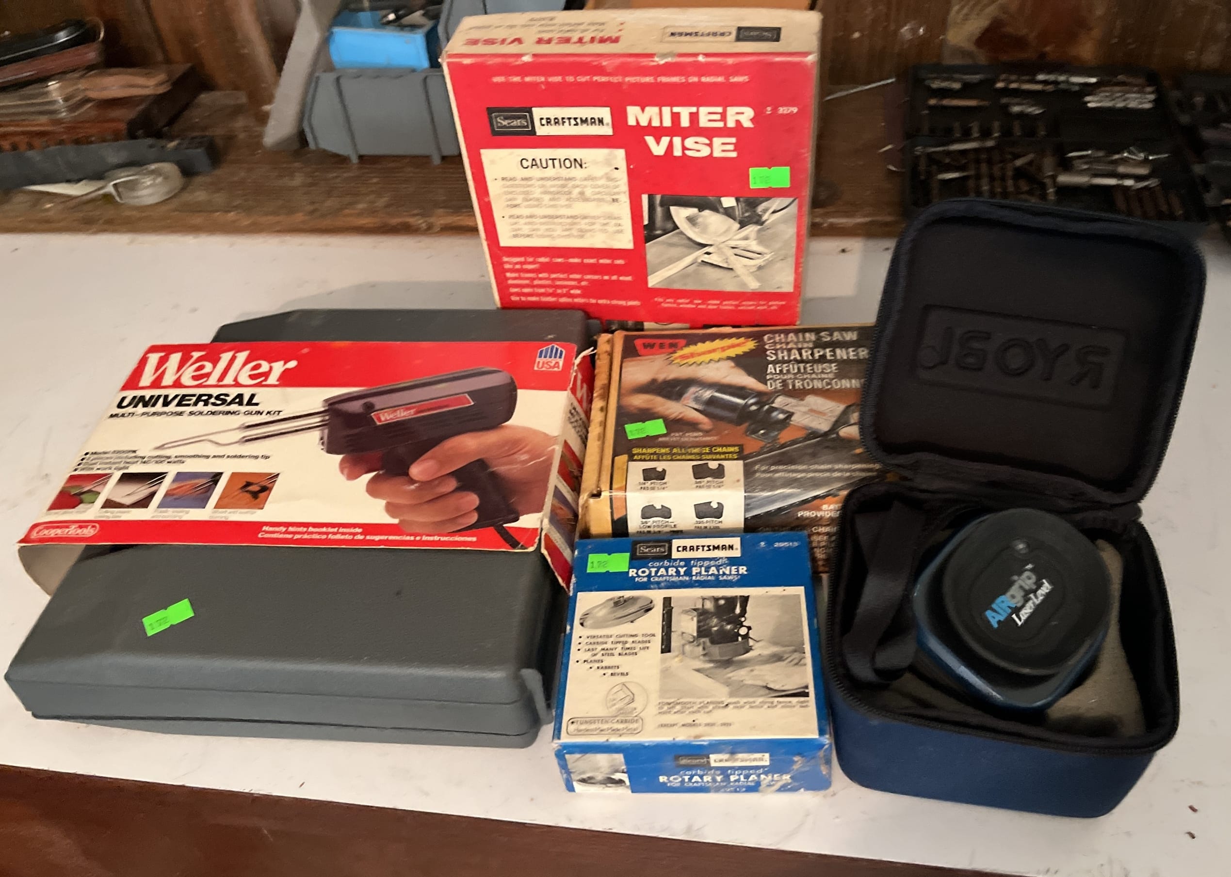172 Ryobi laser, Weller soldering gun, chainsaw sharpener, craftsman attachments