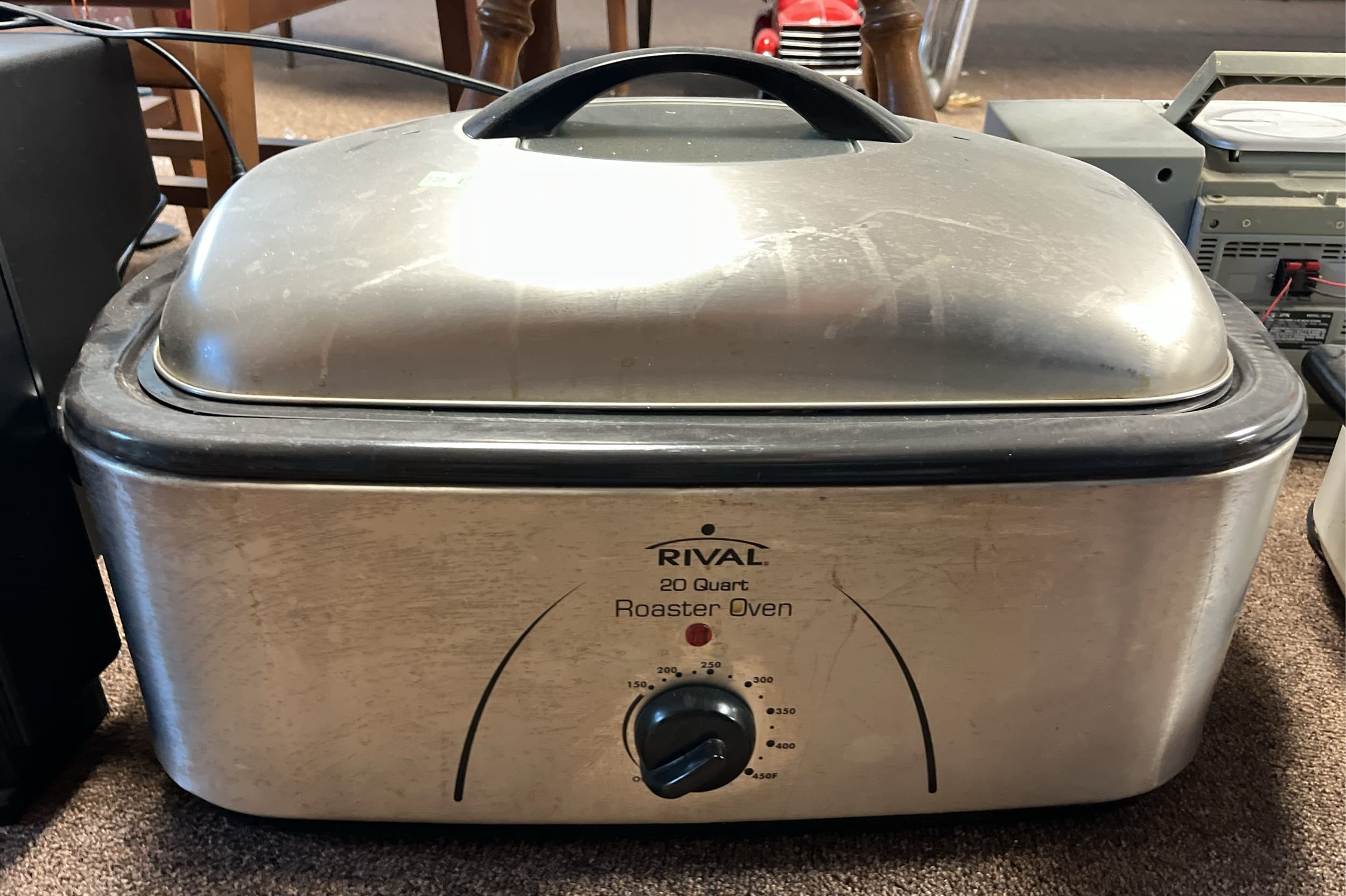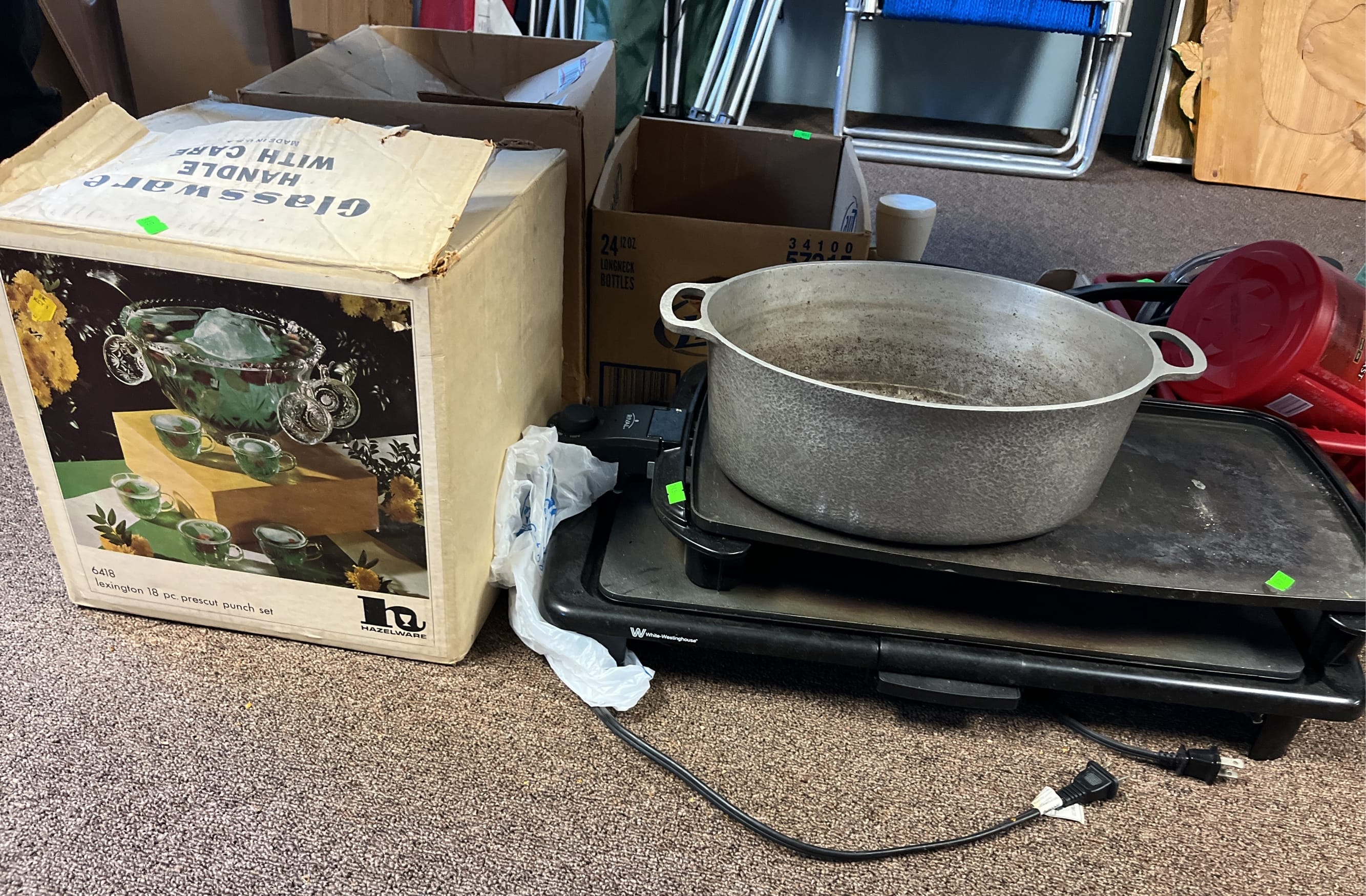 349 2 Electric griddles, aluminum roast pan, punch bowl