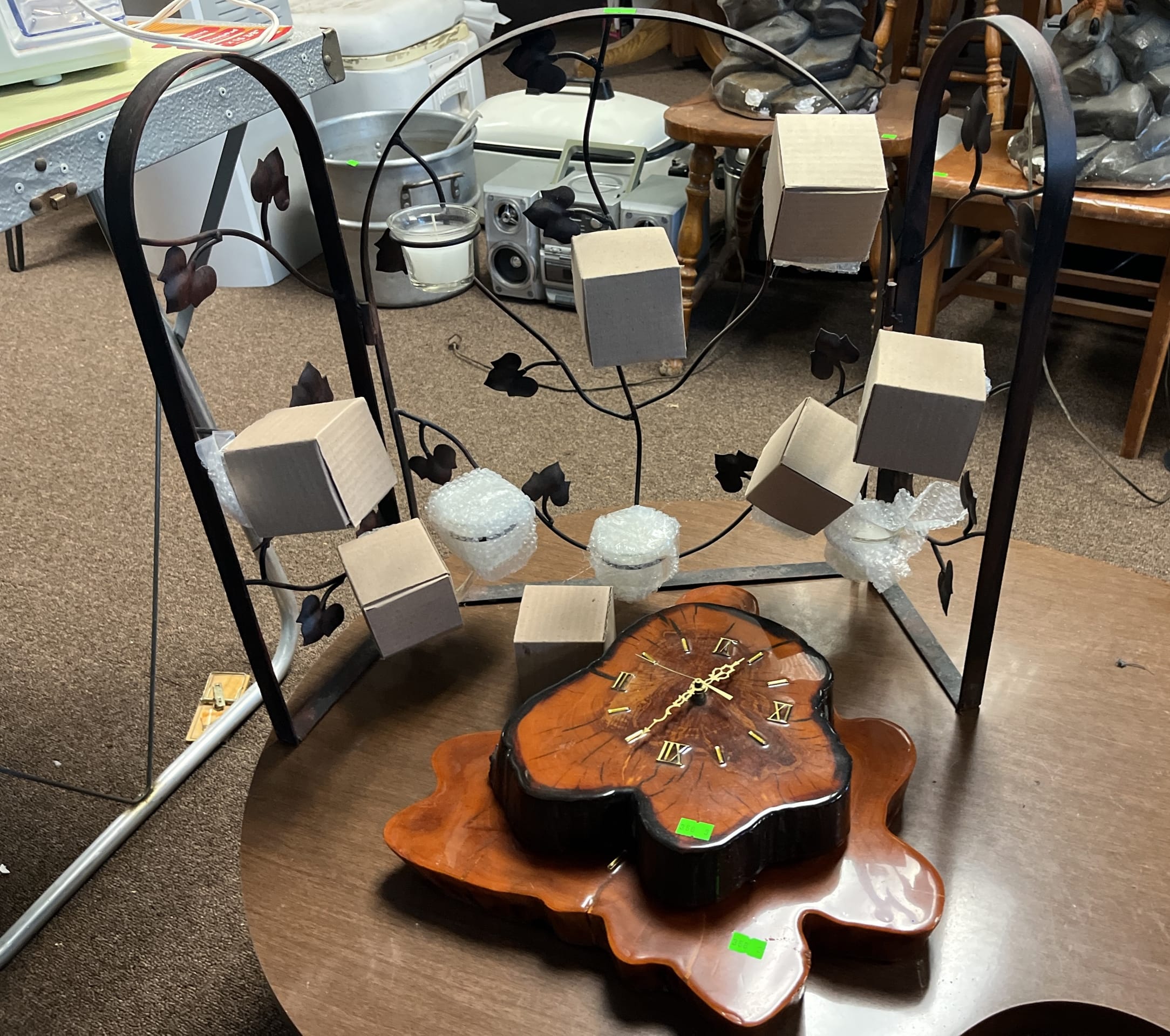 358 2 Wood Lacquered clocks and leaf decor candle holder