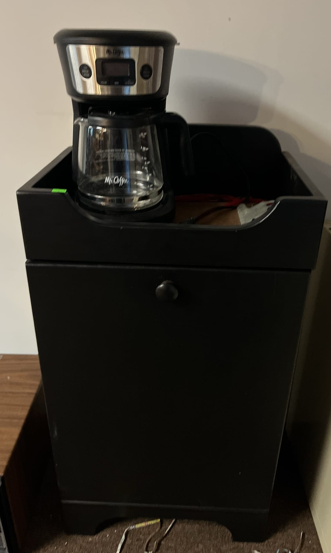 368 Mr. Coffee coffee maker and waste can cabinet 19x13x34"