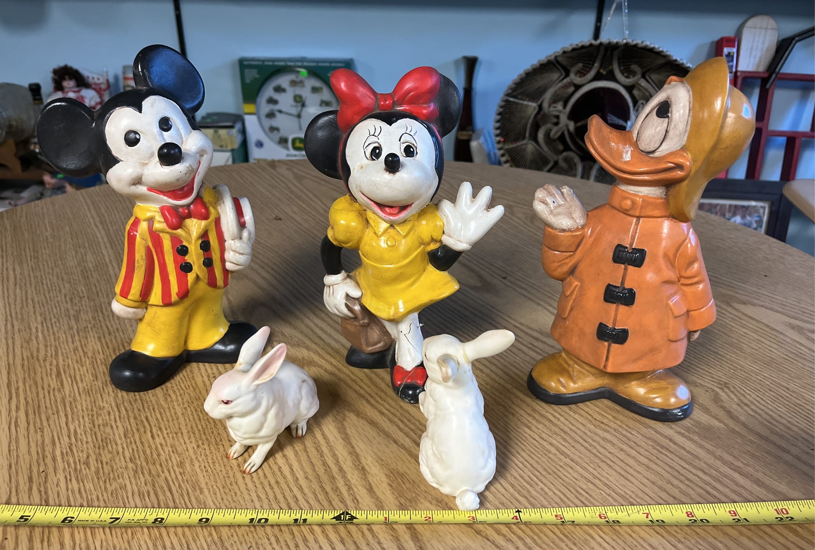 391 Ceramic Walt Disney figurines - Minnie has been repaired & rabbits figurines