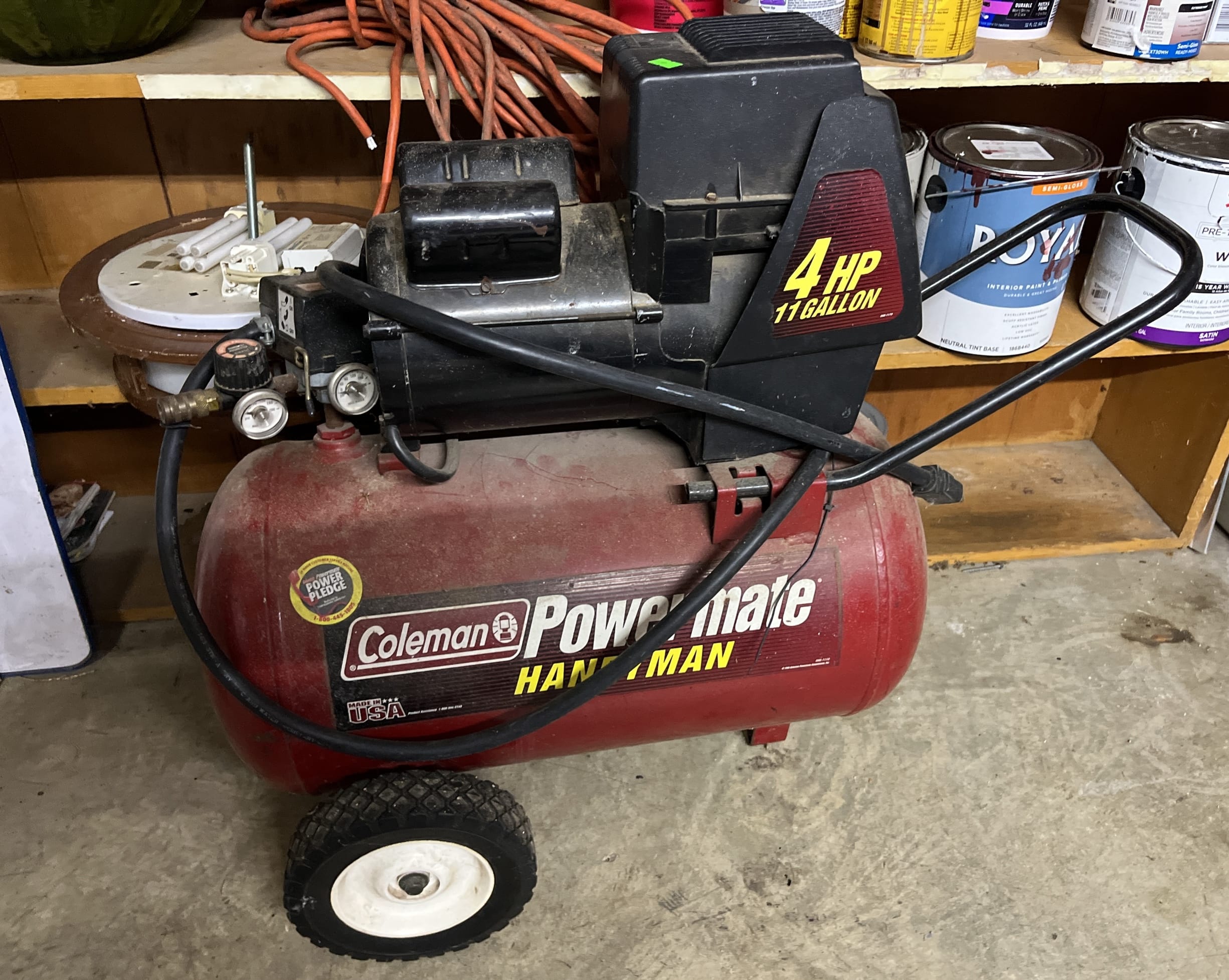 406 Coleman Powermate Handyman 11 gallon air compressor, tank has leak