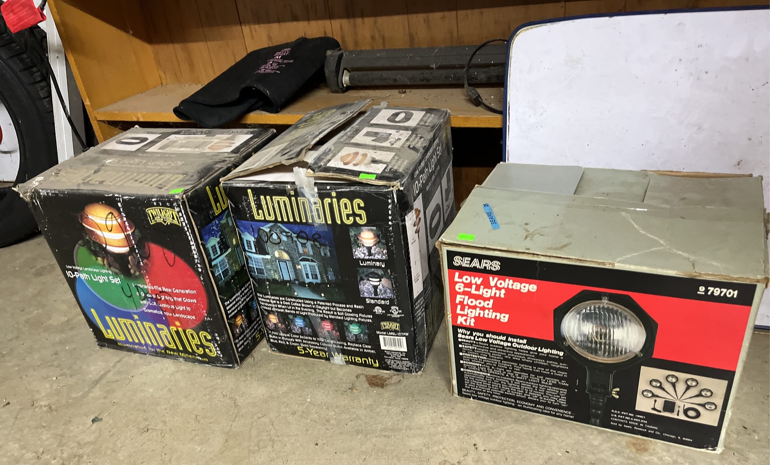 407 Sears flood light kit and two luminaries 10 path light sets - all appear to be new in box