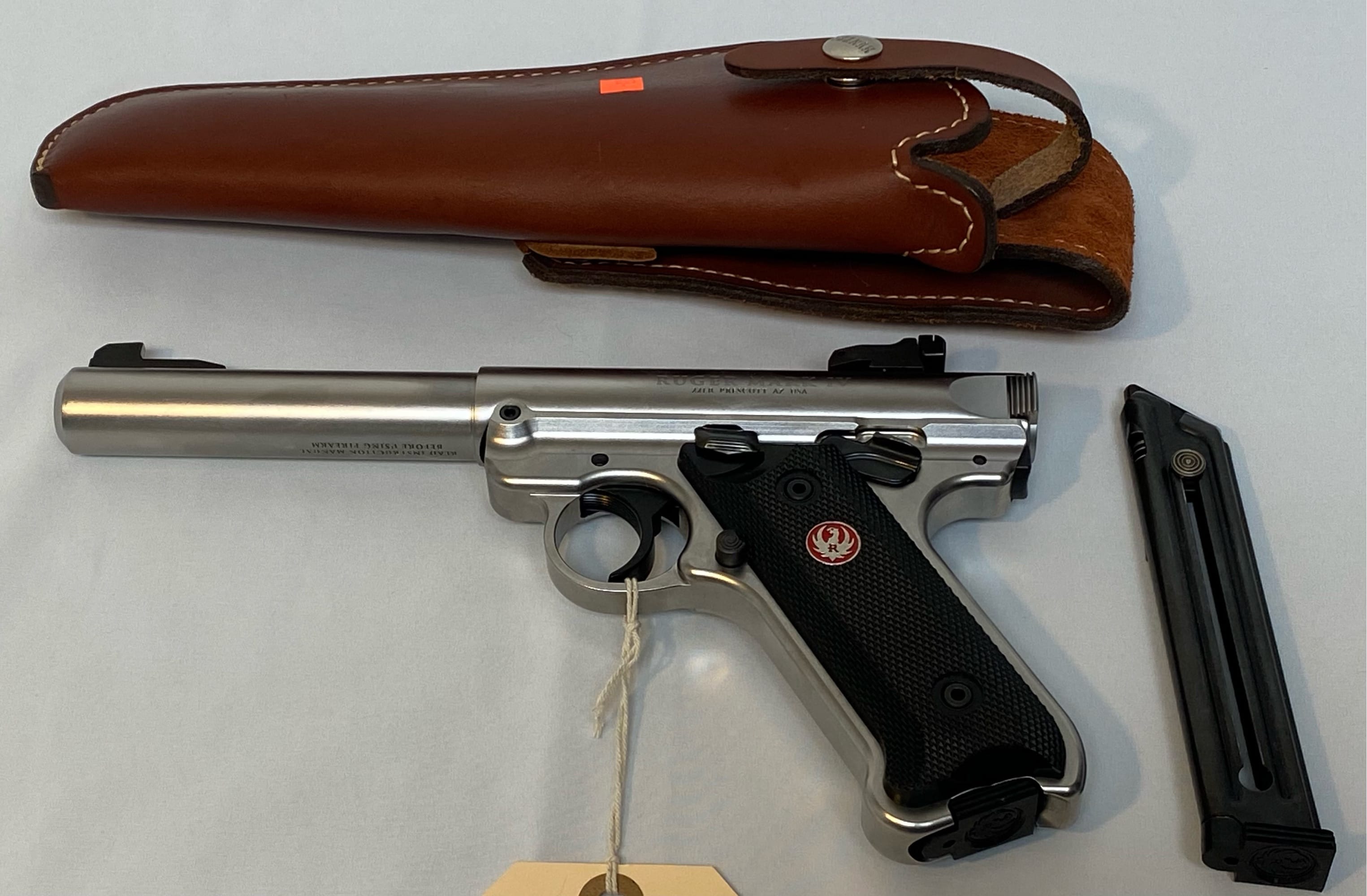 2 Ruger model Mark IV .22LR Pistol with Leather holster 10” & Magazine