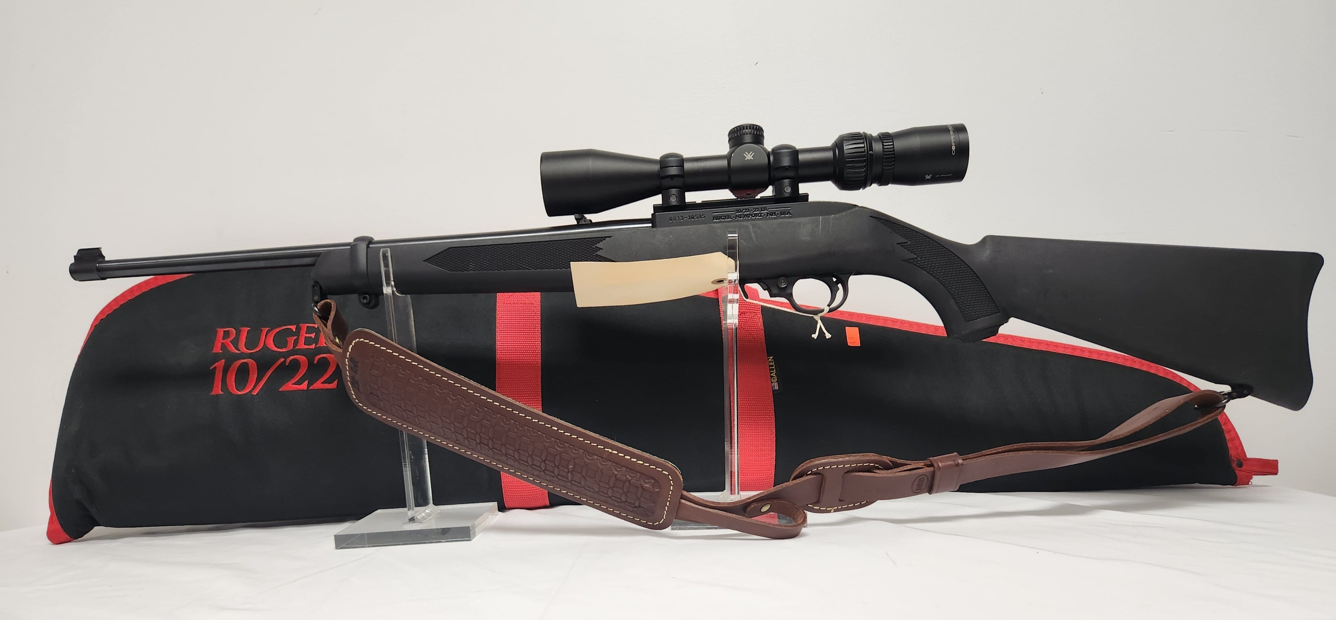 6 Ruger Model 10/22 .22LR Rifle with Vortec 3-9x40 Scope, Soft Case, leather sling & Loaded Magazine