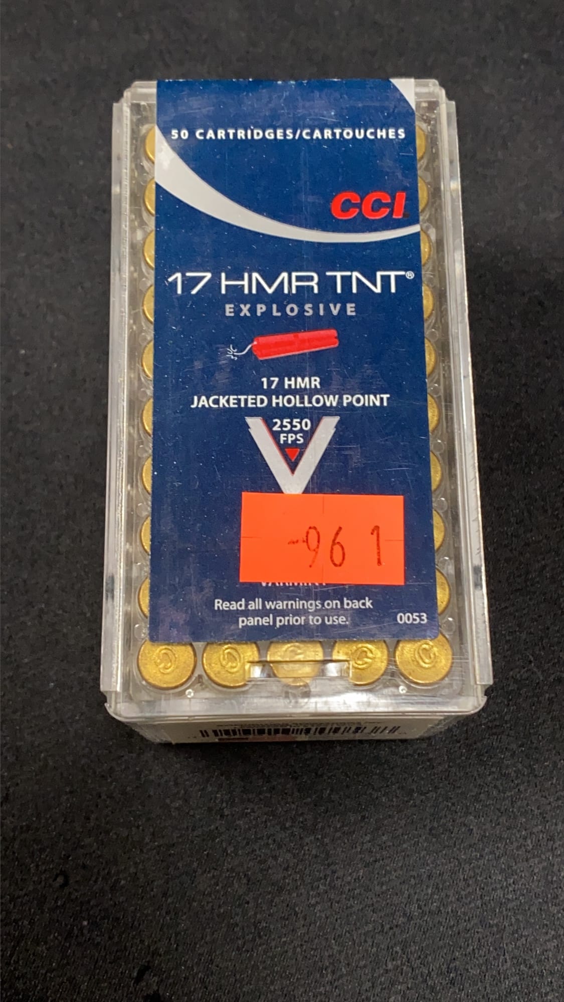 96 CCI 17 HMR TNT Explosive Jacketed Hallow Point Ammo - 50 rounds