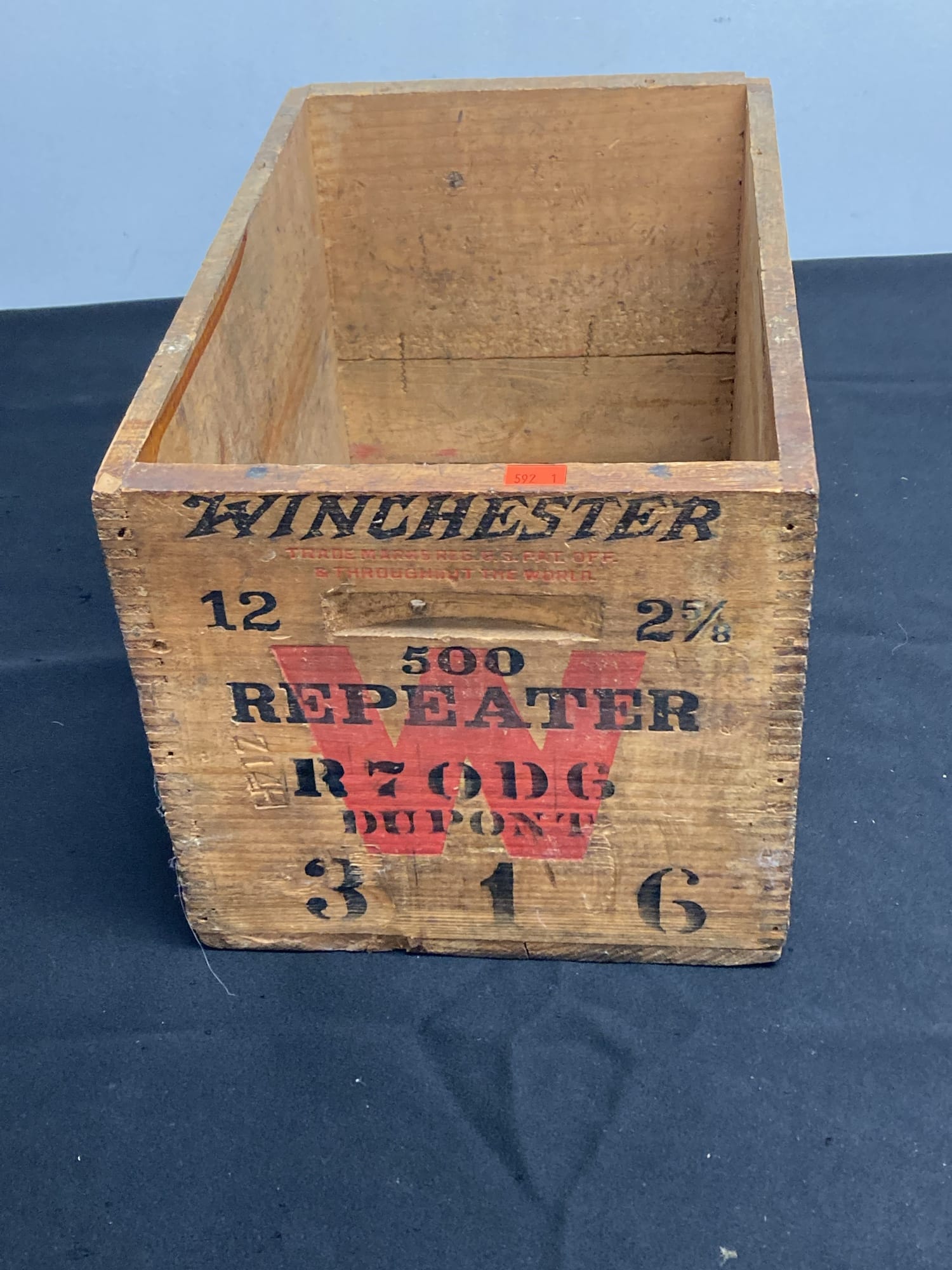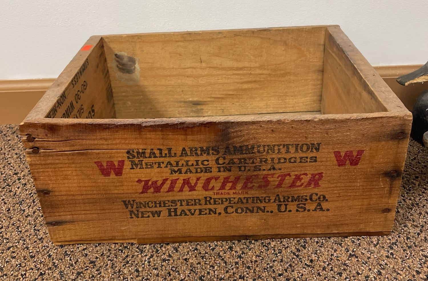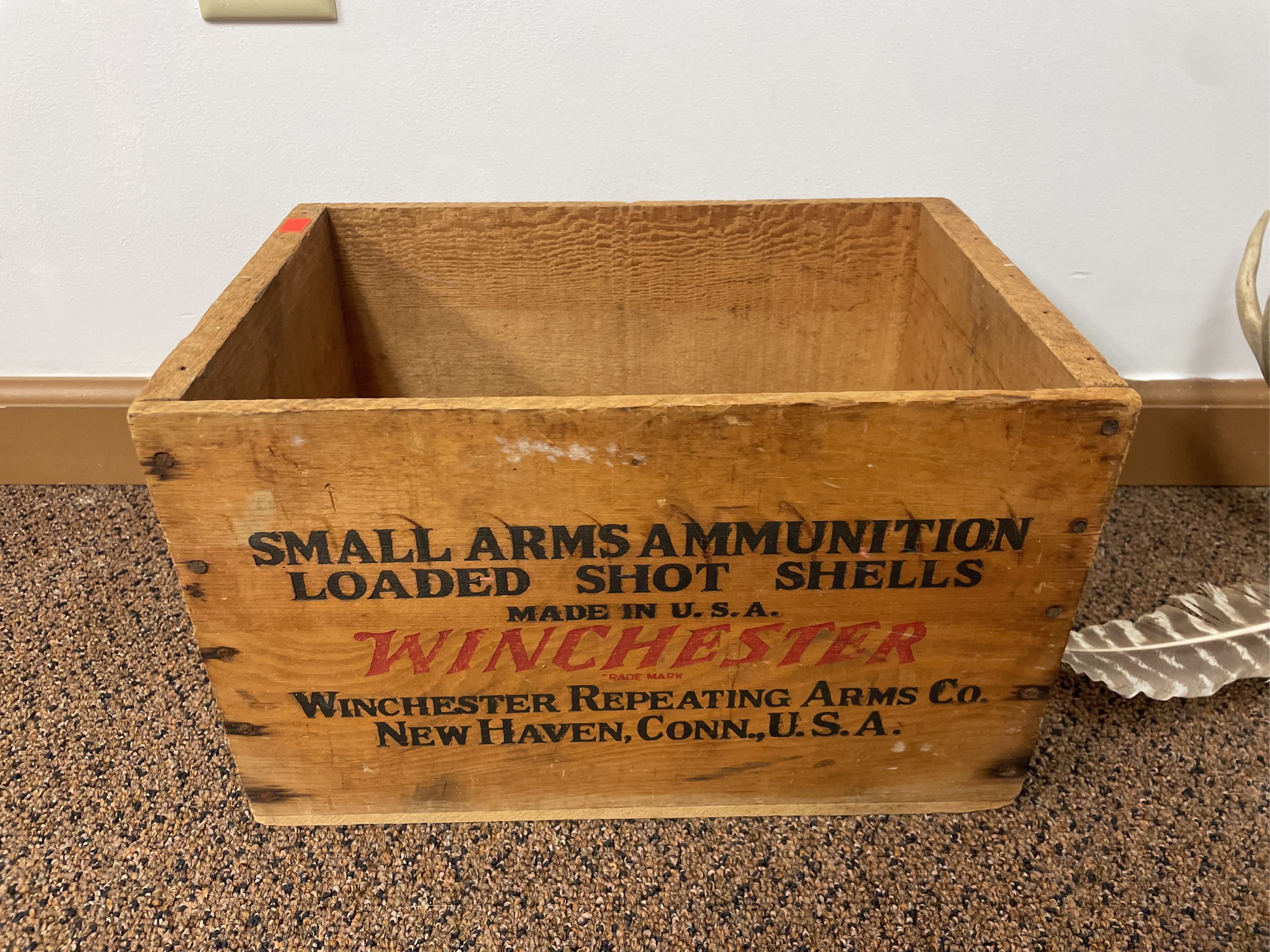 592 Winchester Small Arms Ammunition Wood Ammo Box-14.5”Wx9.5”x9”H