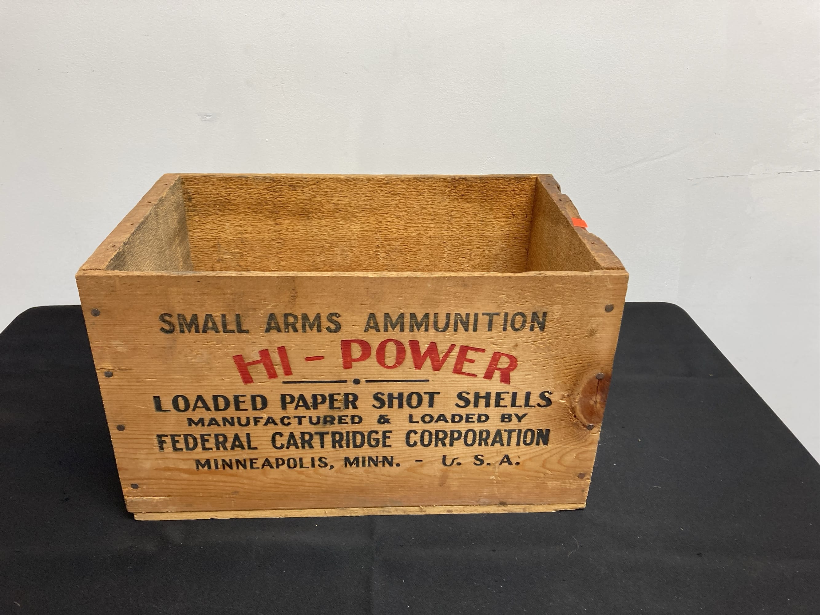 593 Hi-Power Small Arms Ammunition Federal Cartridge Corporation Wood Ammo Box-15”Wx9”x9”H