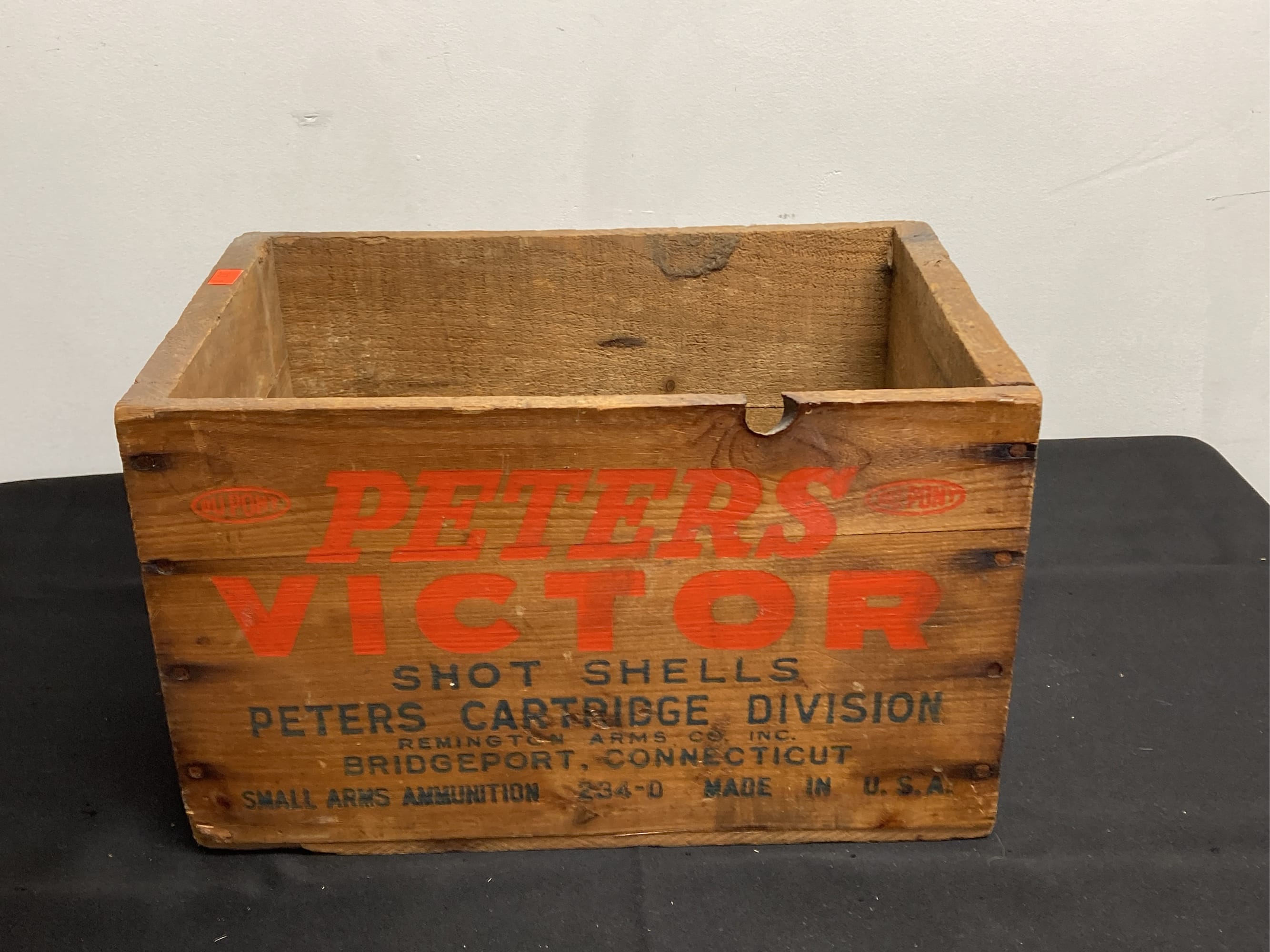 597 Peters Victor Shot Shells Wood Ammo Box-14.5”Wx9.5”x9”H