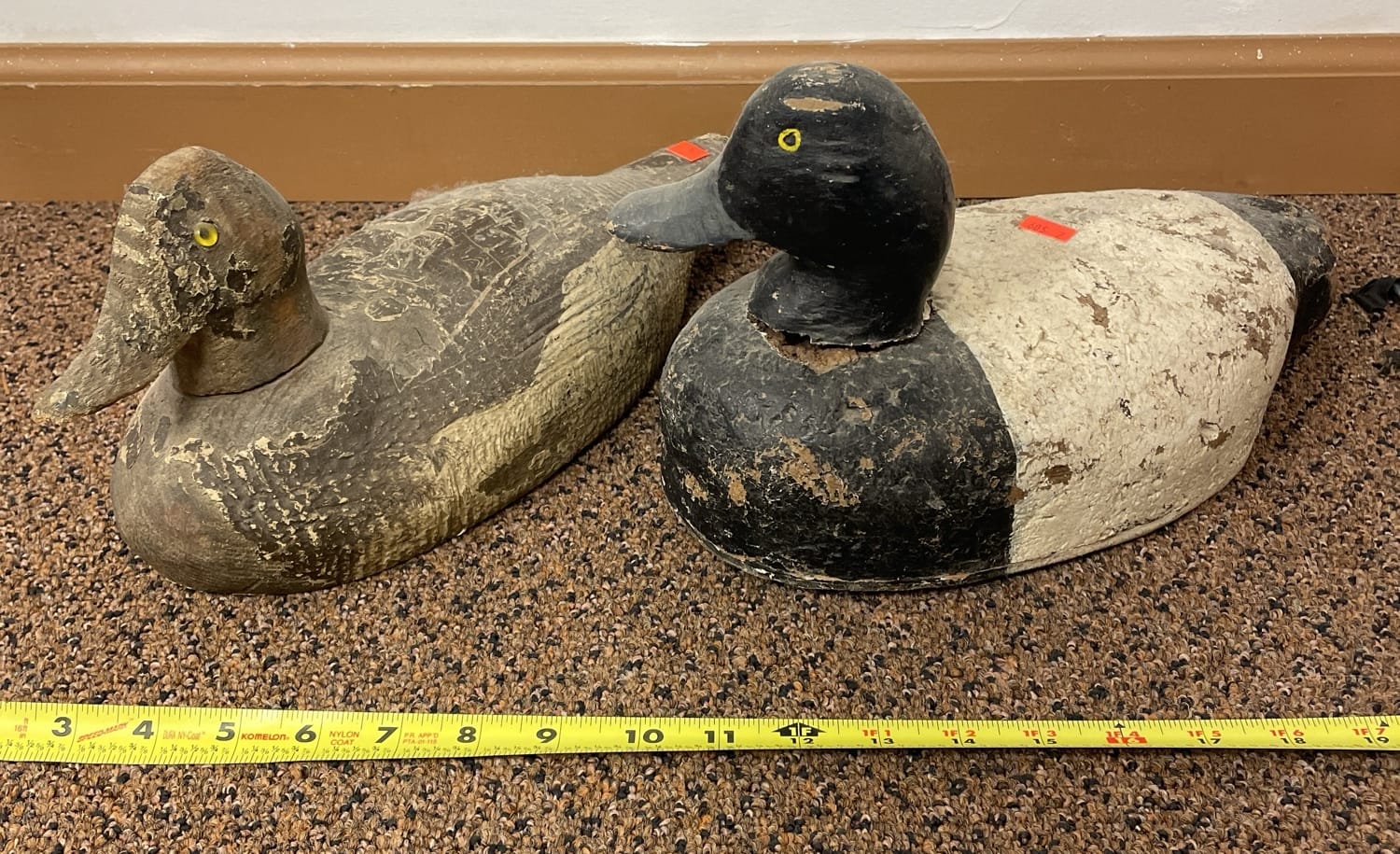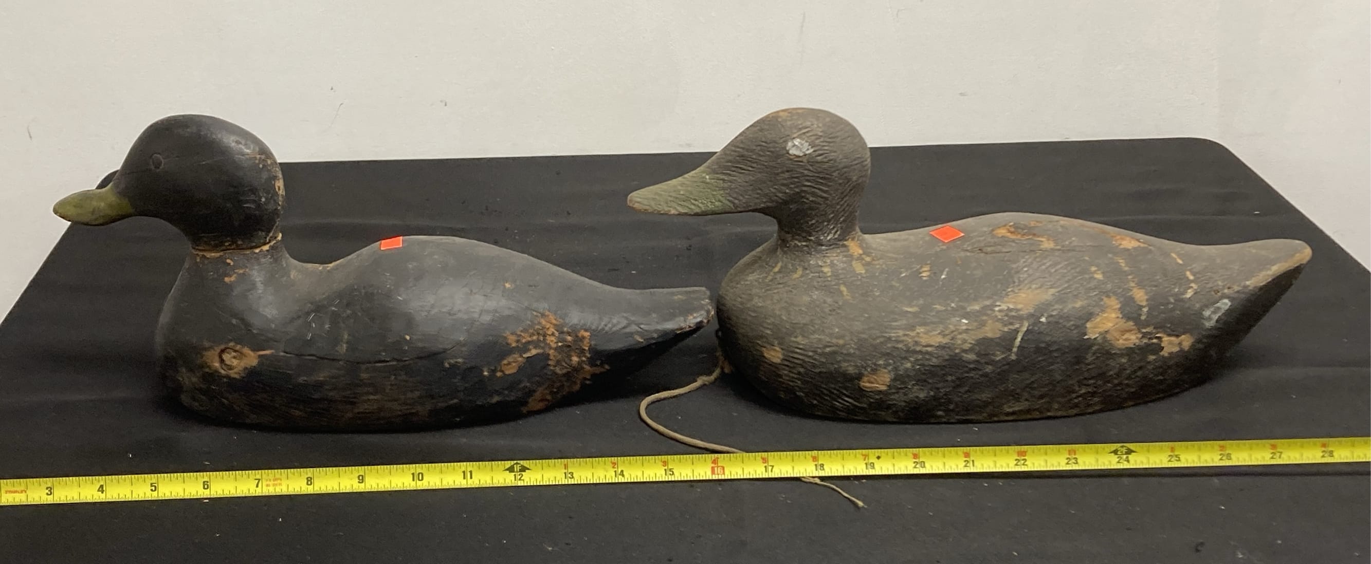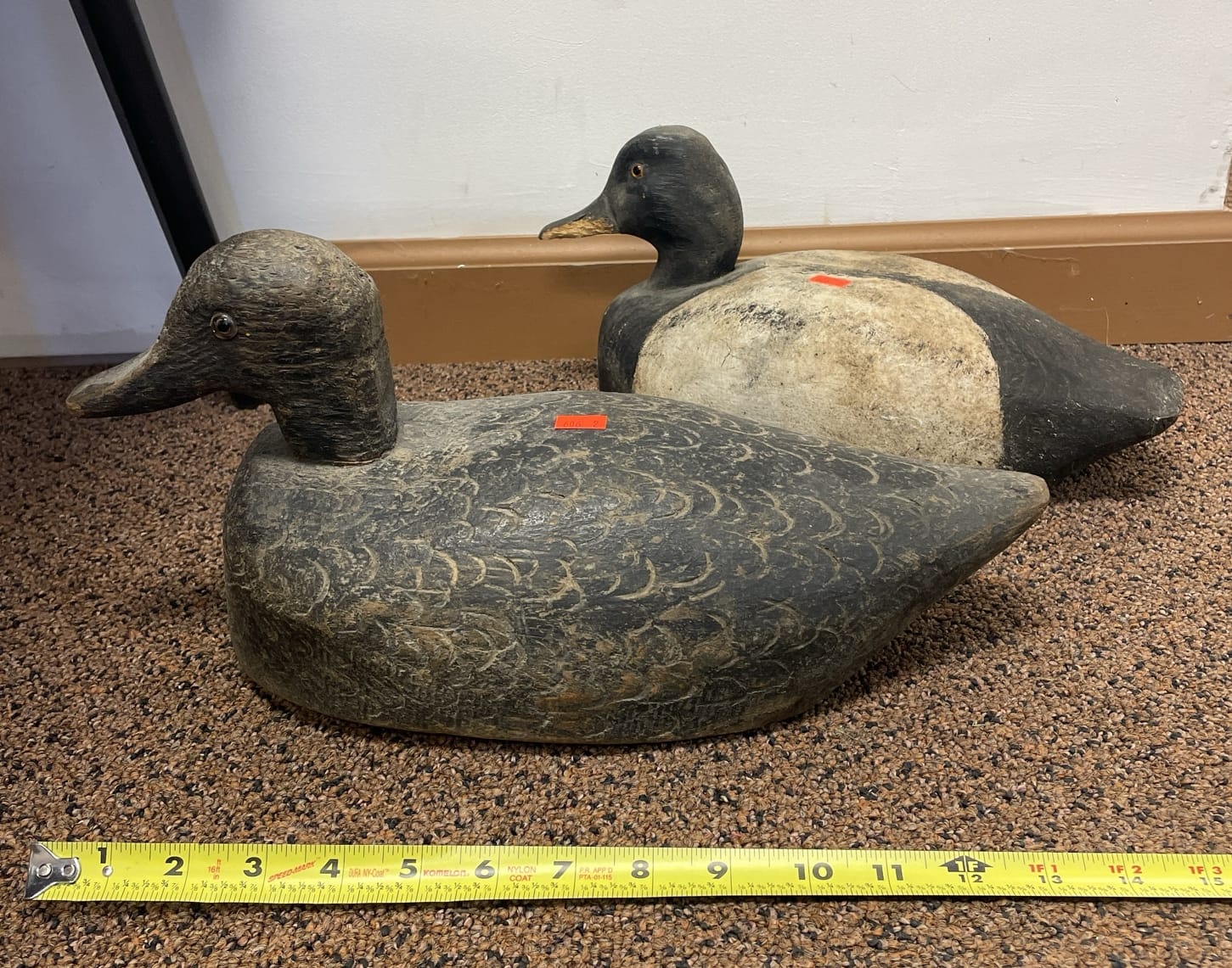 605 Duck Decoys - one wood, one foam body attached to wooden base with wood head - head comes off