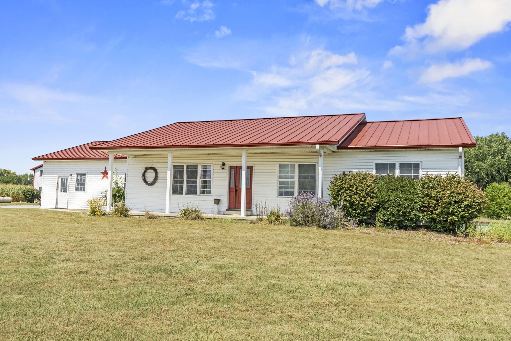 TRACT 1: This beautiful ranch home is nestled in the picturesque countryside on 2.5+/- acres. With 3 bedrooms and 3 bathrooms, this home is ideal for families or those seeking a peaceful lifestyle. Step inside to discover an open-concept layout that seamlessly connects the kitchen, dining, and living areas. The eat-in kitchen features a large island with bar seating, providing ample space for meal prep and entertaining. You'll appreciate the plenty of storage and countertop space, making it a chef's dream. Sliding doors lead you to a deck and expansive backyard, perfect for outdoor gatherings or quiet evenings under the stars. The master bedroom is complete with an ensuite bathroom and a walk-in closet for all your storage needs. The 2 additional bedrooms & 2 bathrooms are generously sized, ensuring comfort for family or guests. The home also boasts a full, partially finished basement, offering endless possibilities for customization—whether you envision a game room, home gym, or additional living space. Outside, the 64x40 pole barn is a standout feature, equipped with a wrap-around porch and living quarters that include 3 bedrooms and 1 bathroom. The living quarters also feature a large eat-in kitchen, making it perfect for guests or as a rental opportunity. With 2 overhead doors and a loft it provides ample storage and workspace for all your hobbies or small business. The pole barn living quarters is currently tenant occupied, making it an excellent investment opportunity for those looking to expand their real estate portfolio. Don't miss your chance to be in the heart of the countryside!