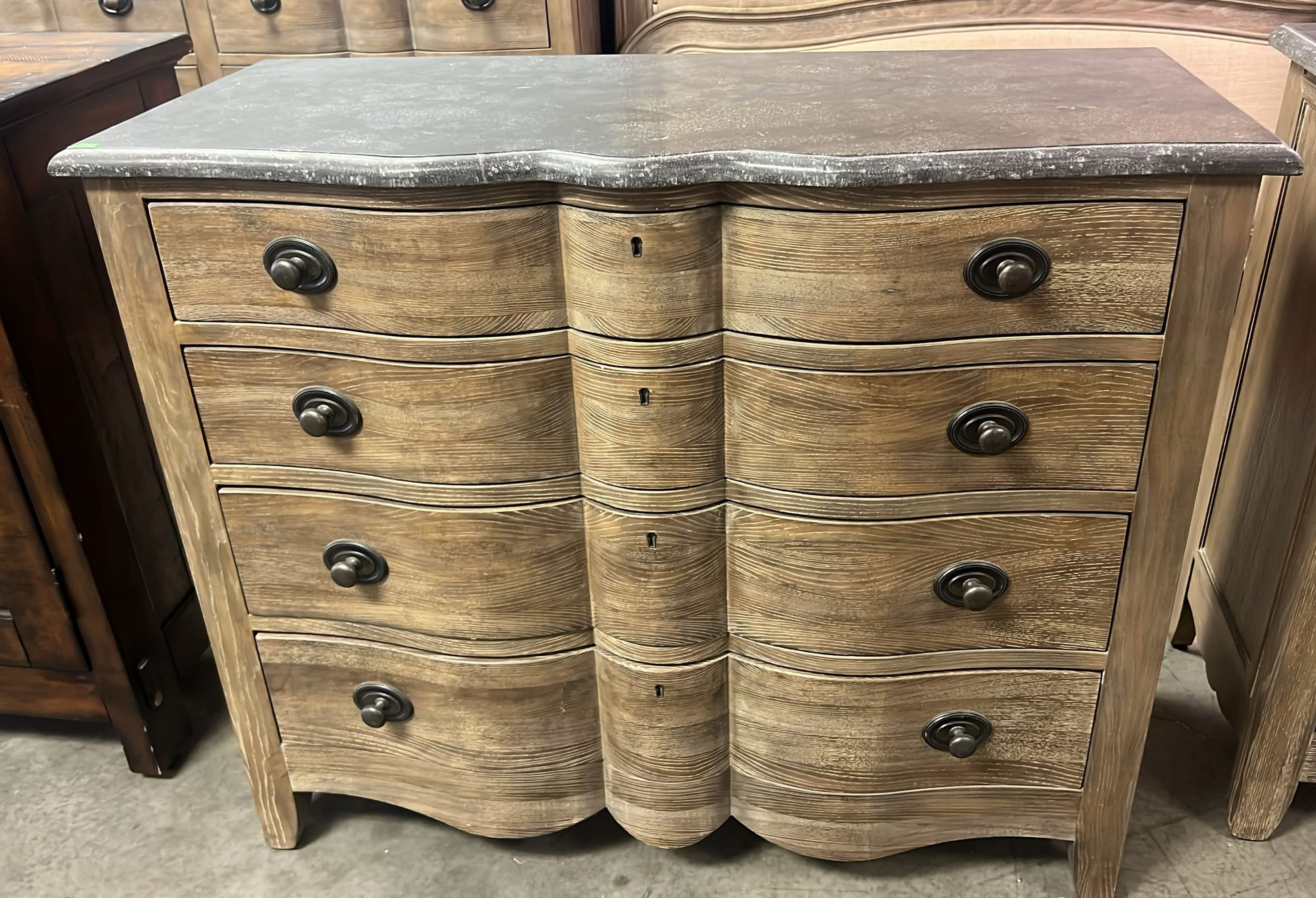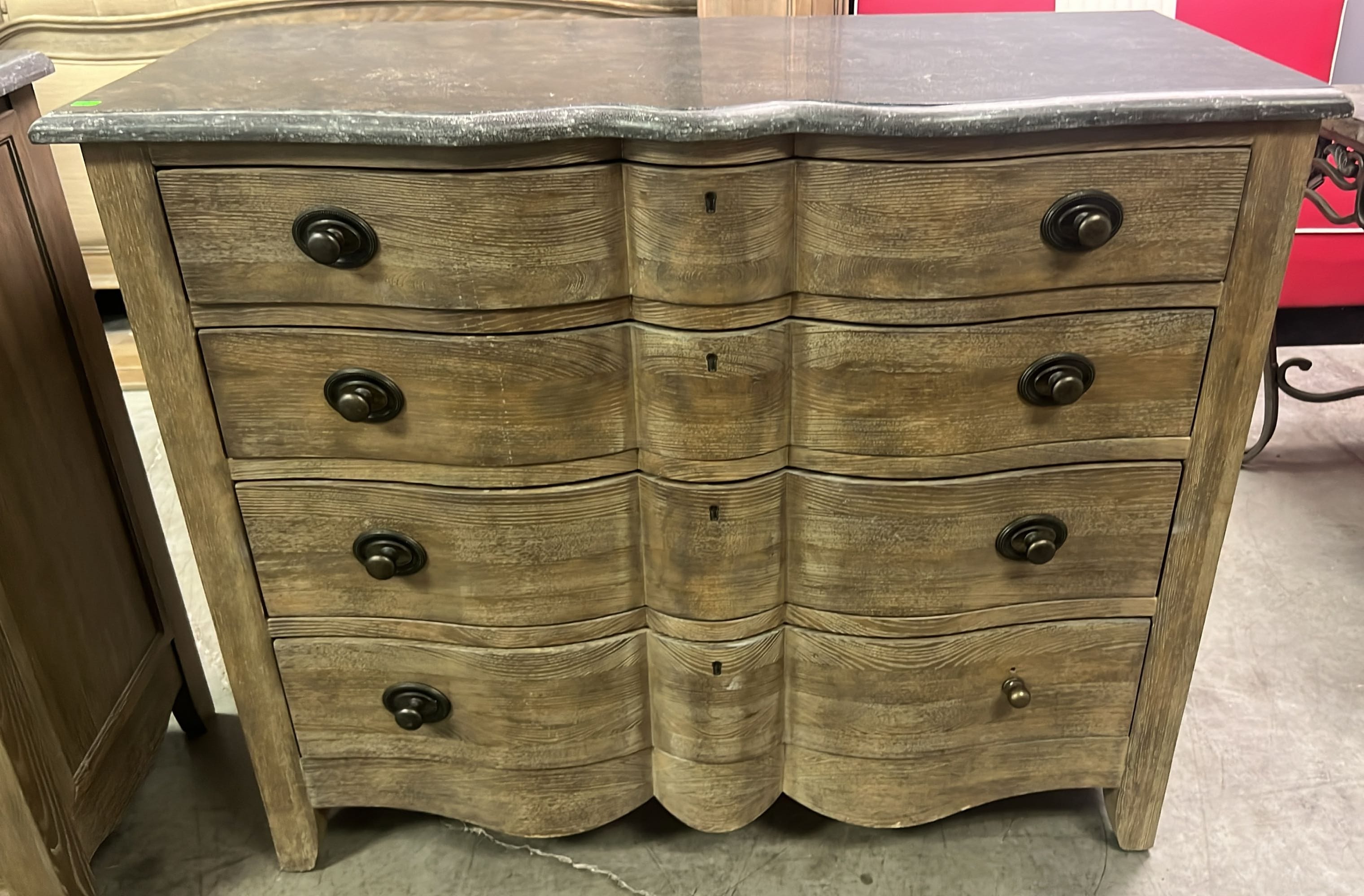 4 Arhaus Furniture Four-Drawer Dresser with Stone Marble Top 44”x36.5”x19”